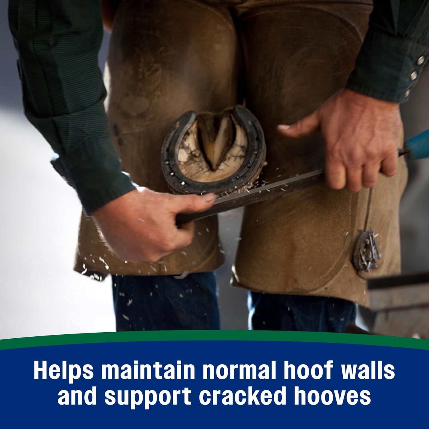 - HELPS KEEP HOOVES HEALTHY AND STRONG by supporting hoof walls and cracked hooves.