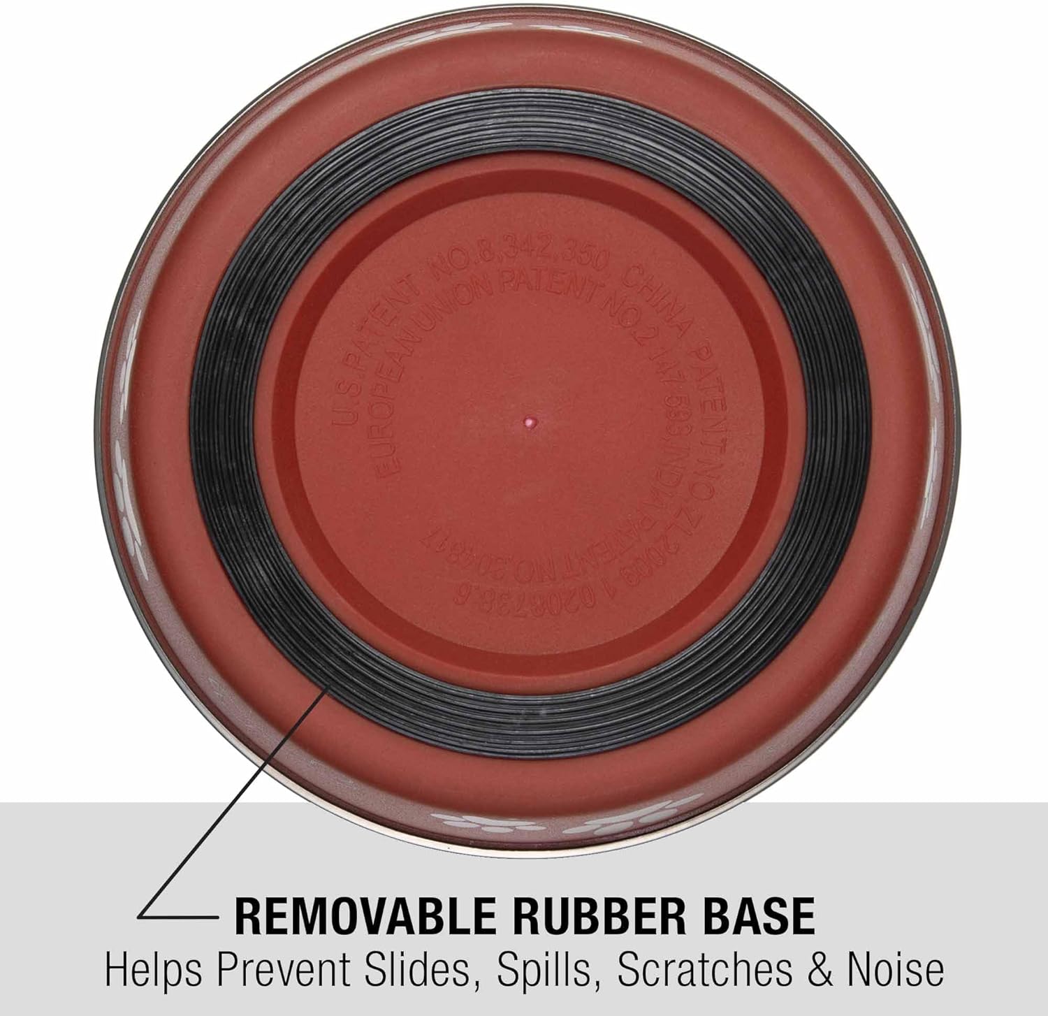- Removable soy-based rubber ring prevents spills and reduces noise