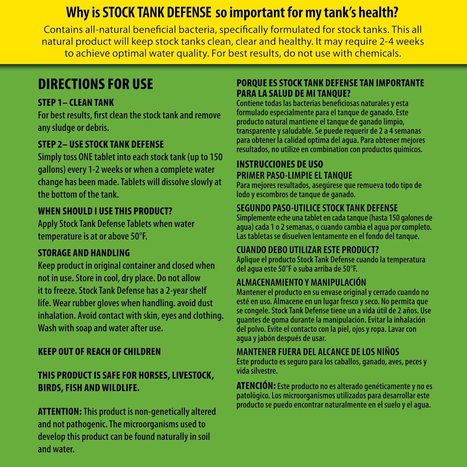 - Keep Your Stock Tank Clean & Clear: Stock Tank Defense tablets contain natural beneficial bacteria specifically formulated for stock tanks, water troughs, and other livestock watering containers.