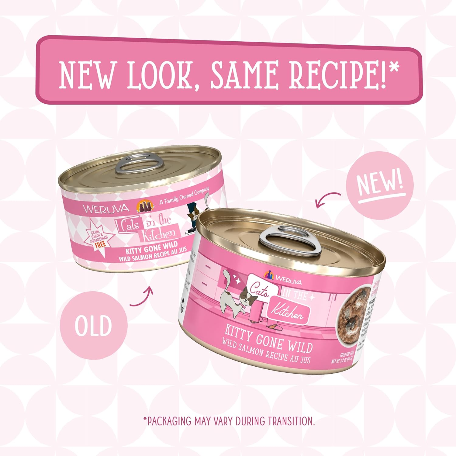 Weruva Cats in The Kitchen, Kitty Gone Wild with Wild Salmon Au Jus Cat Food, 3.2oz Can (Pack of 24)