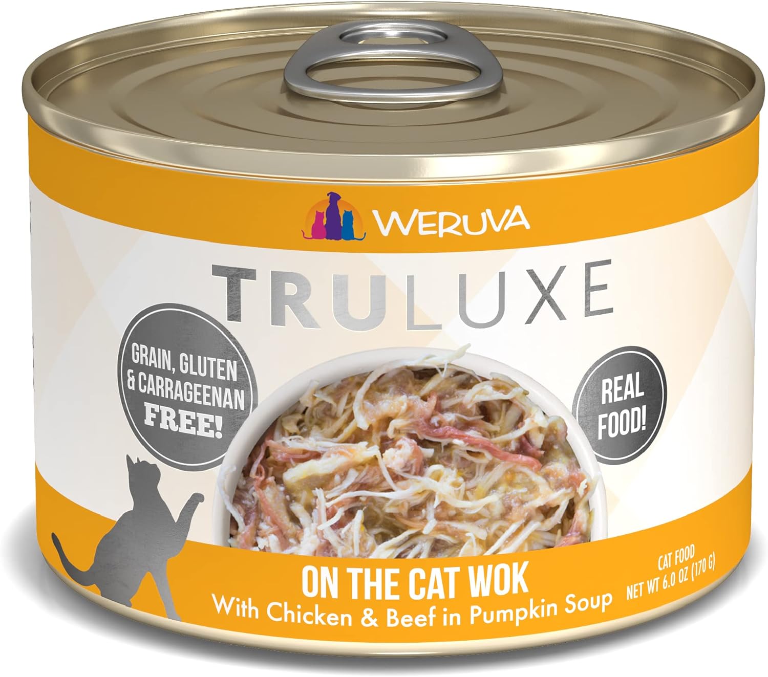 Weruva TruLuxe Cat Food, On The Cat Wok with Chicken Breast & Beef in Pumpkin Soup, 6oz Can (Pack of 24)