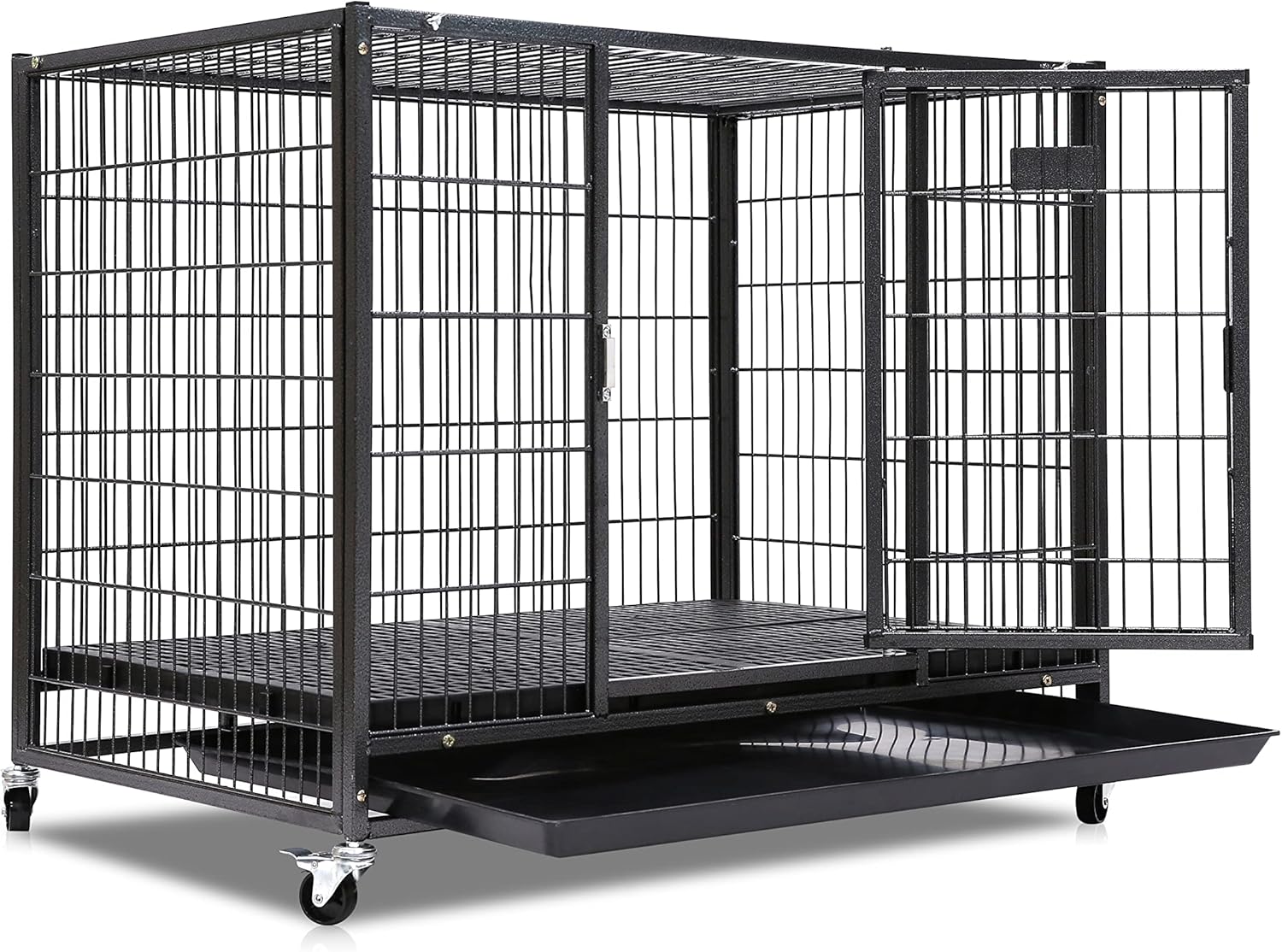 - Larger space than regular 37" heavy duty cage provides more space for pets. Ultra Strong pull out tray provides more convenience for cleaning