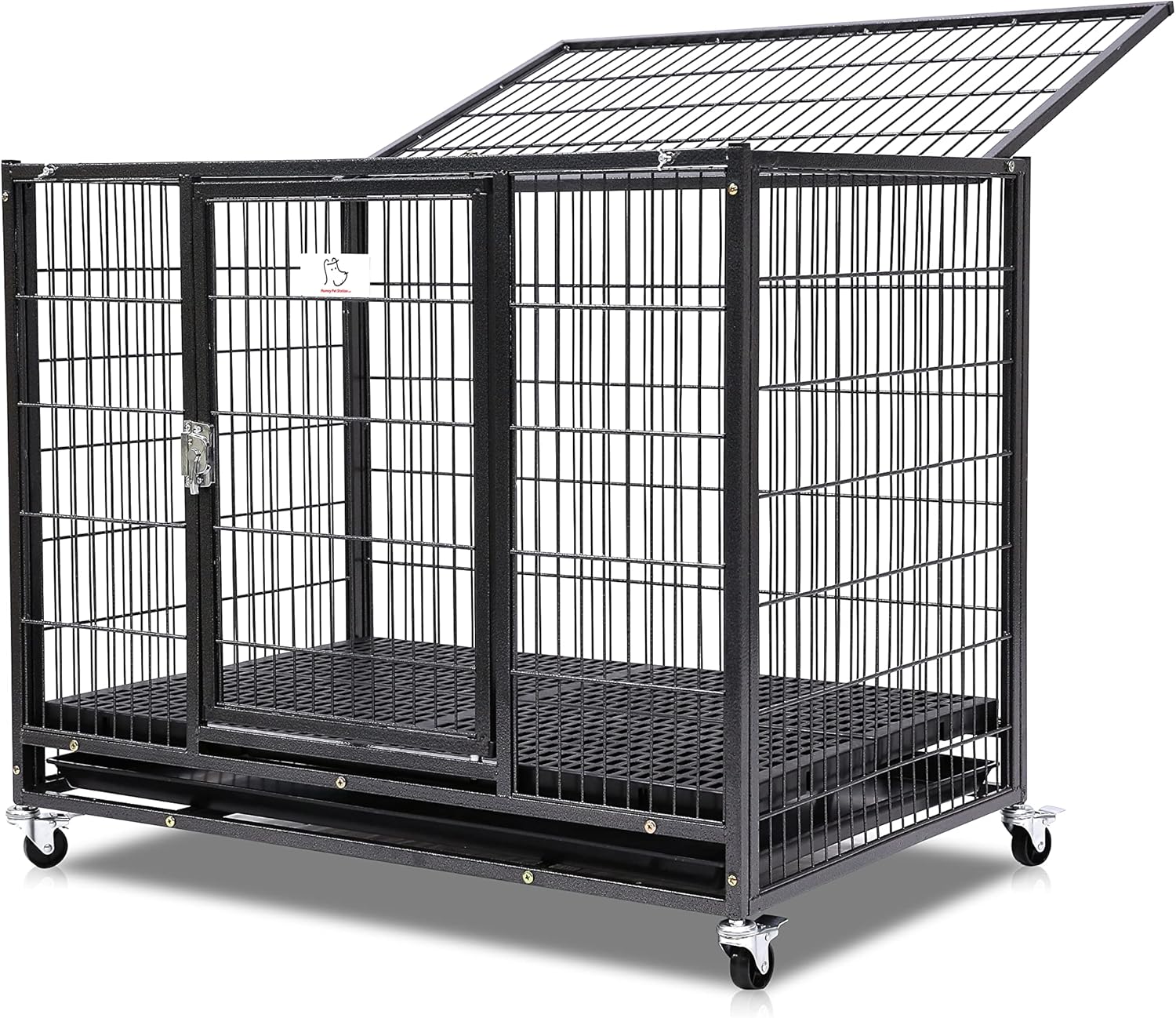 Homey Pet 37" Stackable Larger Heavy Duty Dog Cage w/Plastic Floor Grid, Open Top & Casters