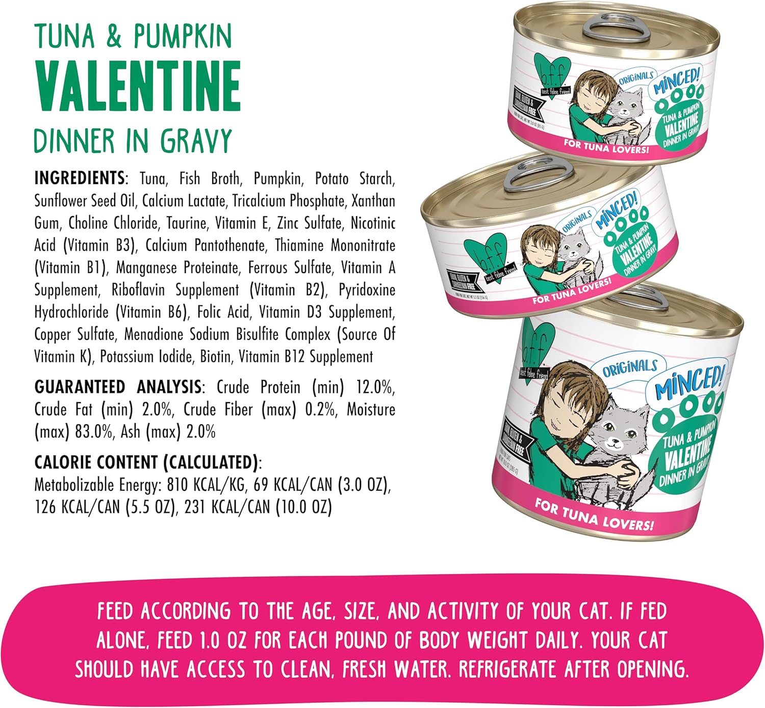 - Tuna and Pumpkin Valentine with wild caught skipjack tuna and pumpkin minced to perfection in a delicious gravy, 3oz Can, Pack of 24