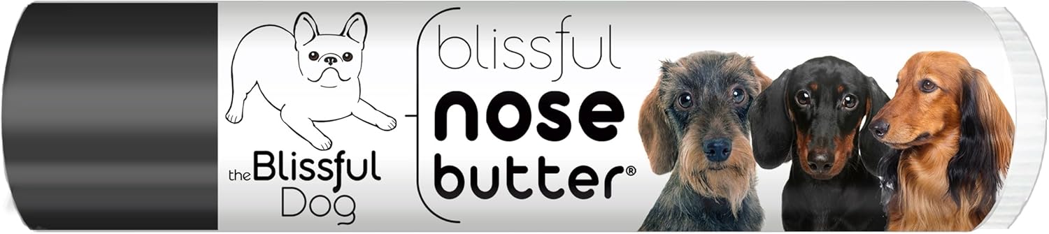 The Blissful Dog Daschund Nose Butter for Dry, Cracked Skin, Lick-Safe Dog Nose Balm with Moisturizing Shea Butter, Almond, Olive, and Essential Oils, Pet Supplies, Uncented, 0.15 oz.
