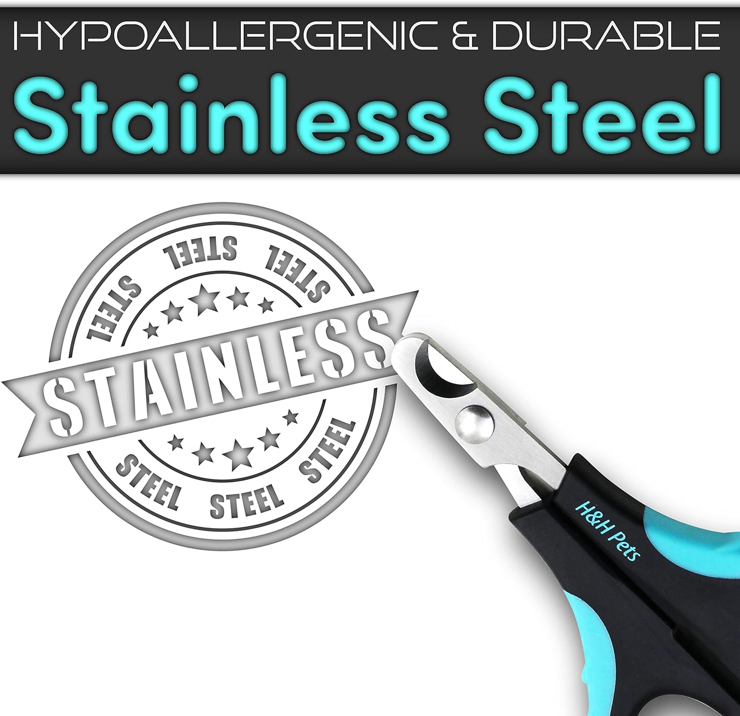 - HIGH QUALITY AND EASY TO USE DESIGN – The cat nail clipper's stainless steel blade is hypoallergenic and durable. The handle is finished with a slip-proof coating that allows you to securely and comfortably grip them in order to prevent painful accidents. Detailed instruction is printed on the back of the package.