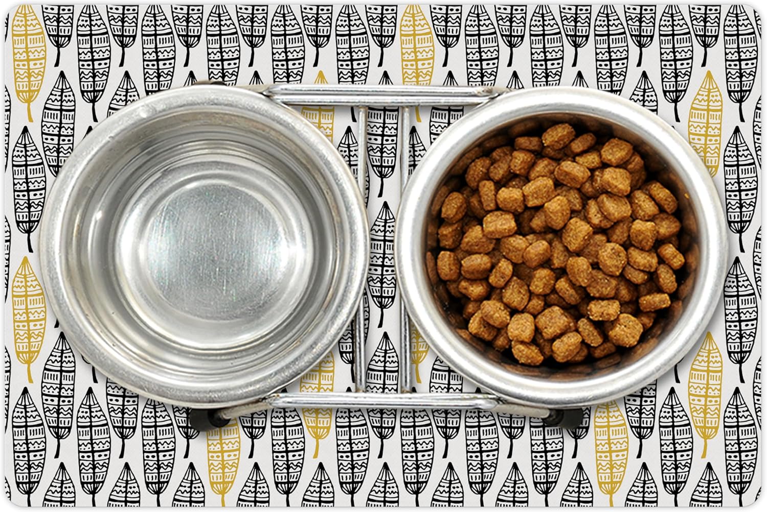 - Features - Fun prints and long-lasting colors. Find any theme and color you want to match your room decor or your pet’s personality. This pet feeding mat can even feature your cat's or dog’s favorite item or design, adding a cheerful touch to your pet’s feeding area.