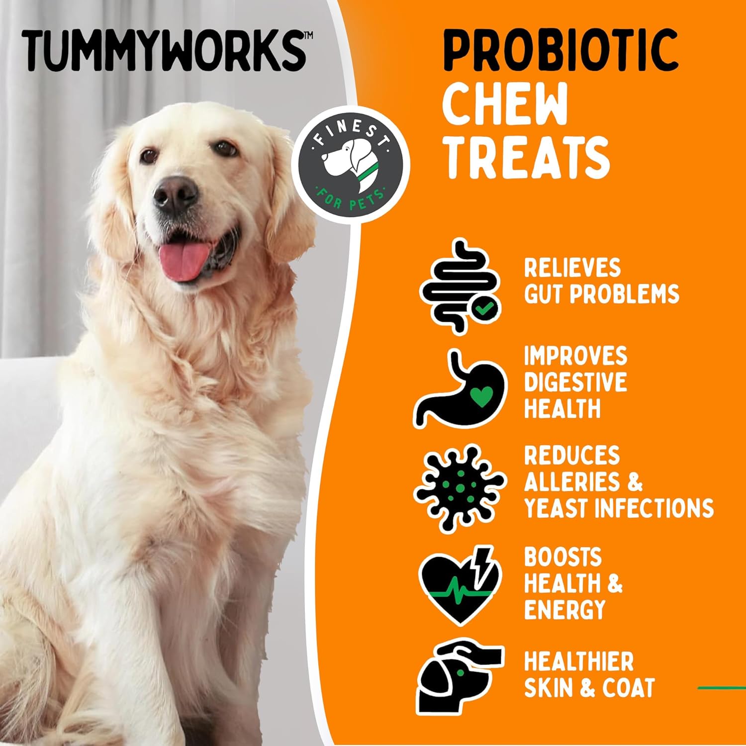 TummyWorks Probiotic 120 Soft Chews for Dogs All Ages - Supports Digestive Health, Relieves Diarrhea, Constipation, Good for Itching, Allergies, Yeast Infections. Added Digestive Enzymes, Made in USA