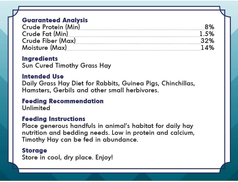 - This Hay Provides For Your pet’S Many Needs, From Dental Care, To Play Time, And Is Additive And Preservative Free