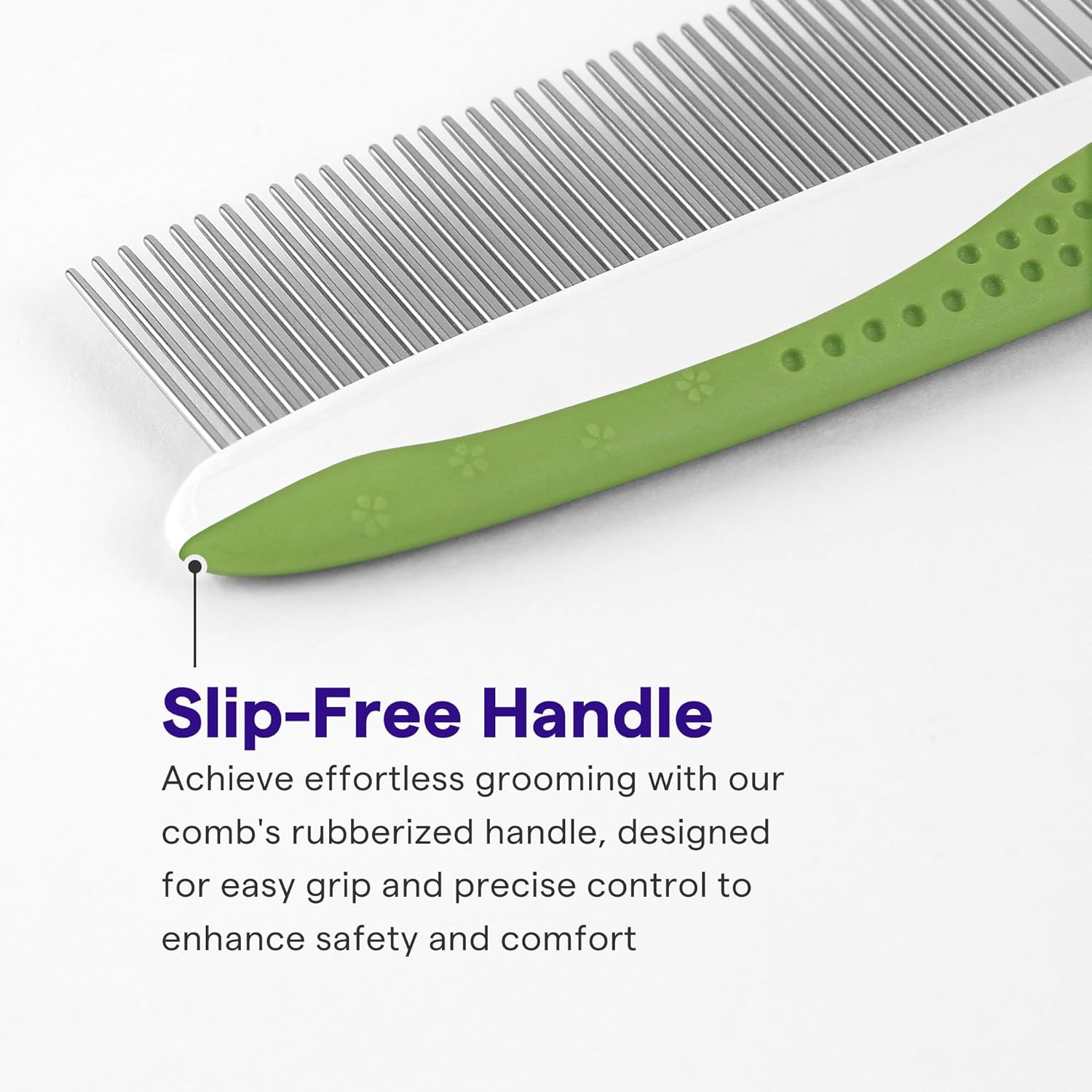 - ERGONOMIC NO-SLIP HANDLE: Finished with a rubbery grip, our grooming comb is safer & easier to use than most groom tools. The non-slip coating prevents slippery accidents to keep you & your pet safe.