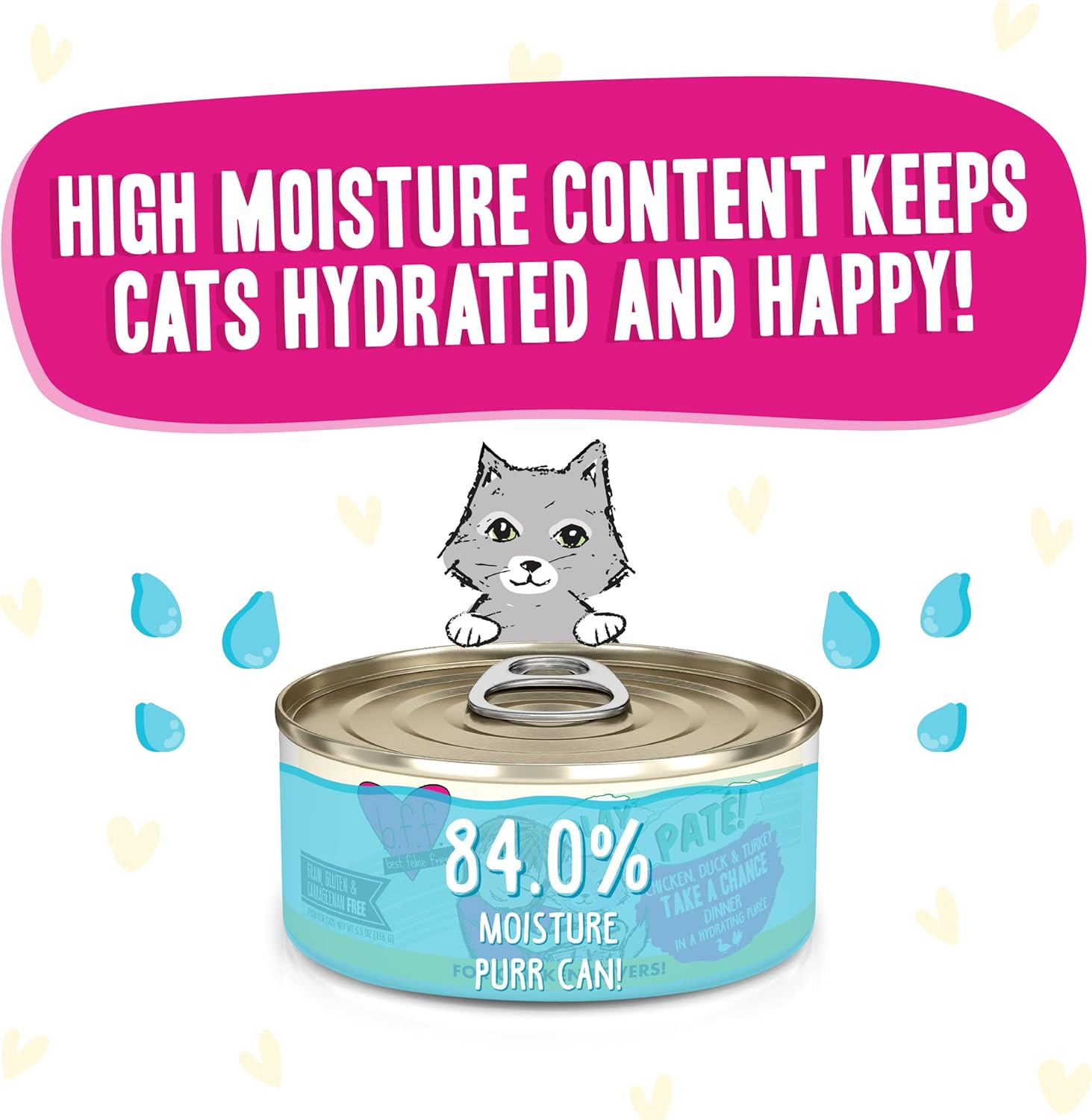 - B.F.F. Play - Protein-rich, high-moisture wet cat food that is low in carbs and fat. Pate Lover’s, Aw Yeah!
