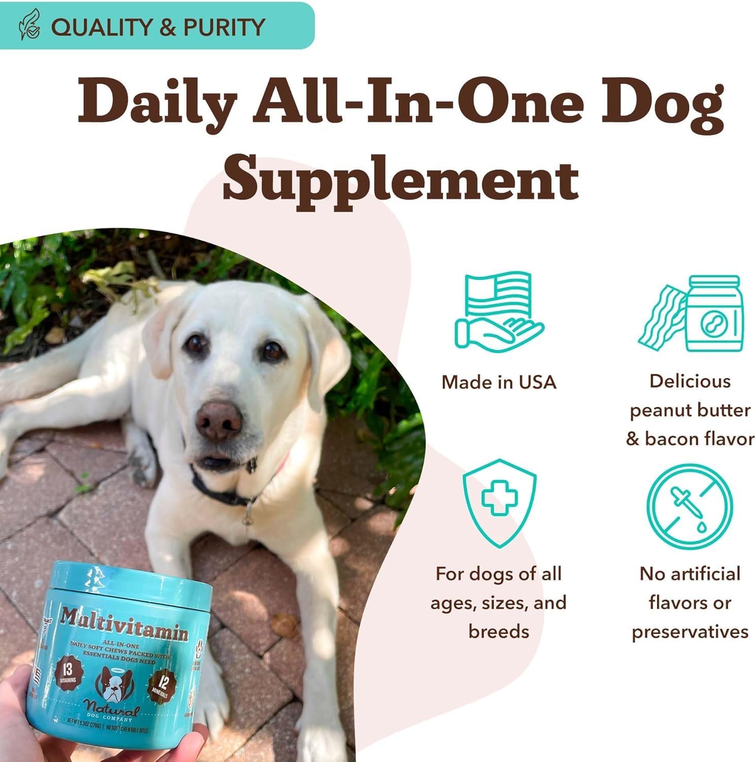 Natural Dog Company 25-in-1 Multivitamin Chews for Dogs – Daily Soft Dog Vitamins with Antioxidants, Zinc & Folic Acid – Supports Joints, Skin & Coat, Immune & Heart Health – All Ages, All Breeds