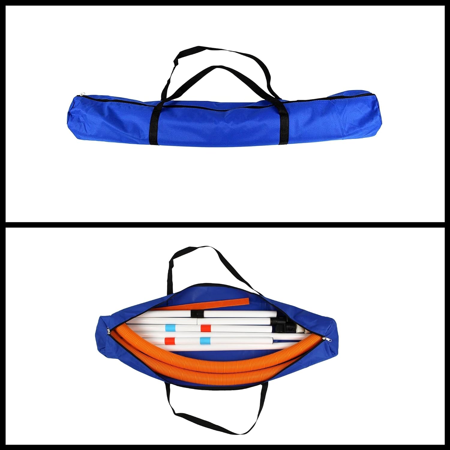 - Easily sets up, transports, & stores in an included blue carrying case.