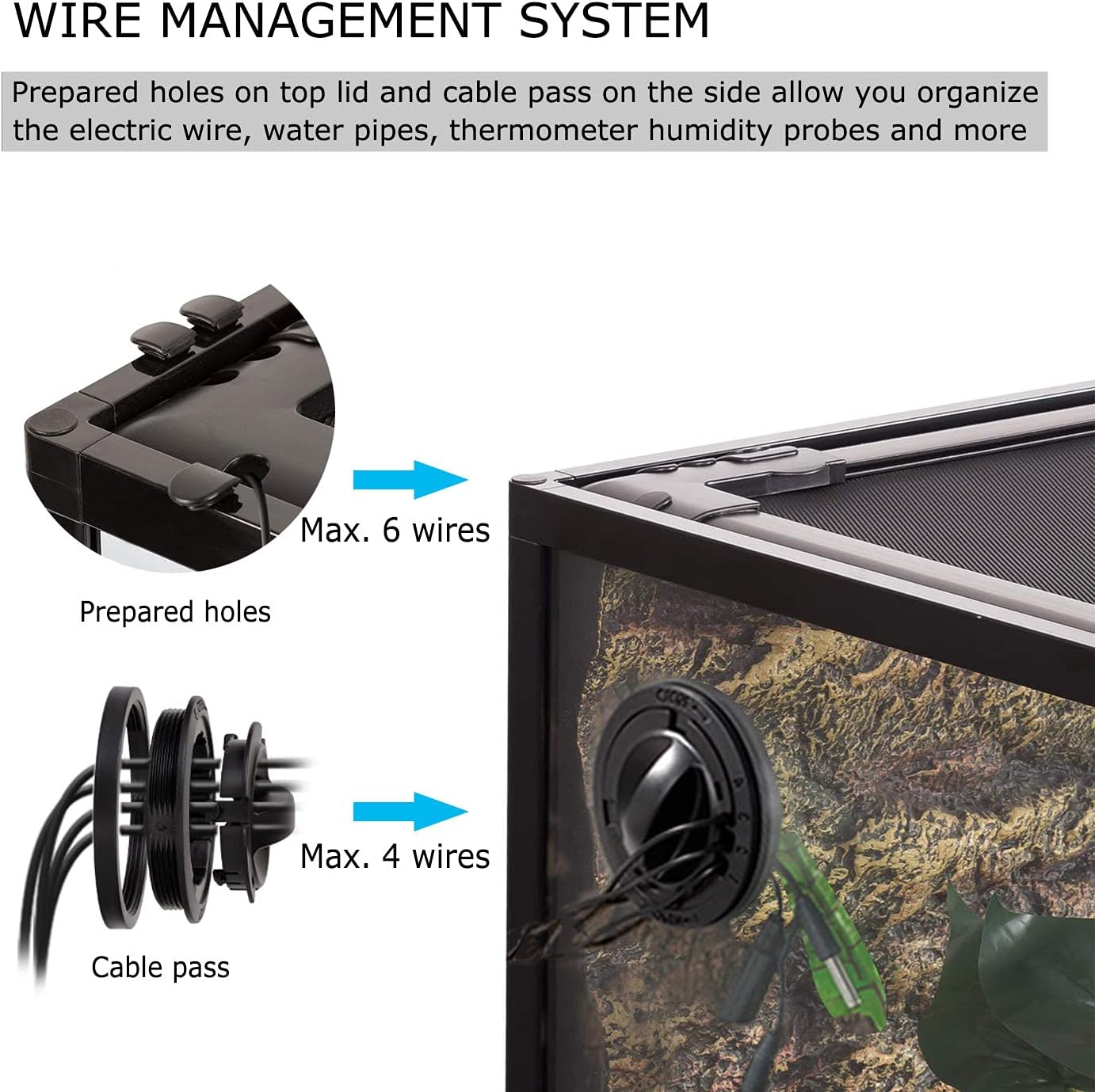 - ăWATERPROOF RAISED BOTTOMăRaised bottom plate provides adequate ventilation and enough spaces for accessories such as UTH(under tank heater). And waterproof bottom provides a comfortable living environment for amphibians.