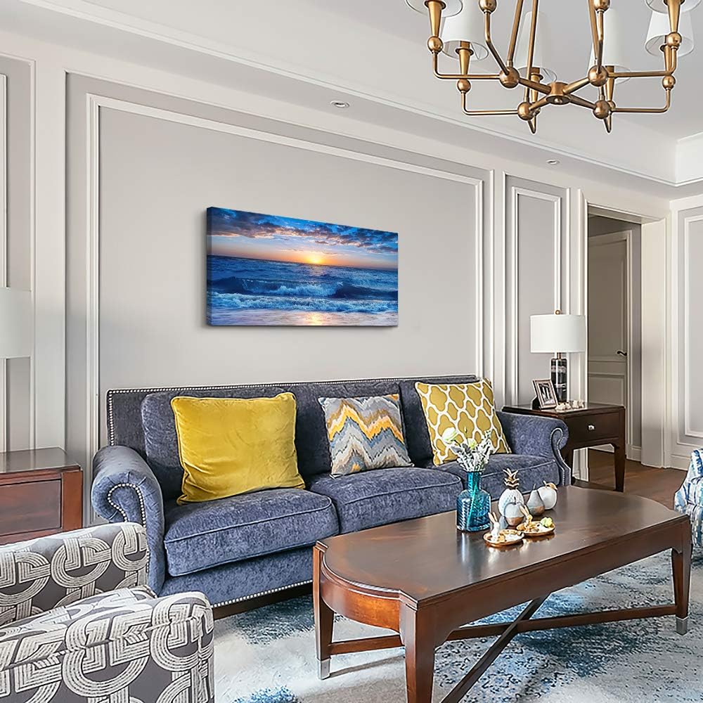 Canvas wall art for living room Blue Ocean Sea sun landscape painting bathroom Wall Decor Ready to Hang for Home Decorations office family bedroom kitchen Works canvas Prints pictures 30" x 60"inch