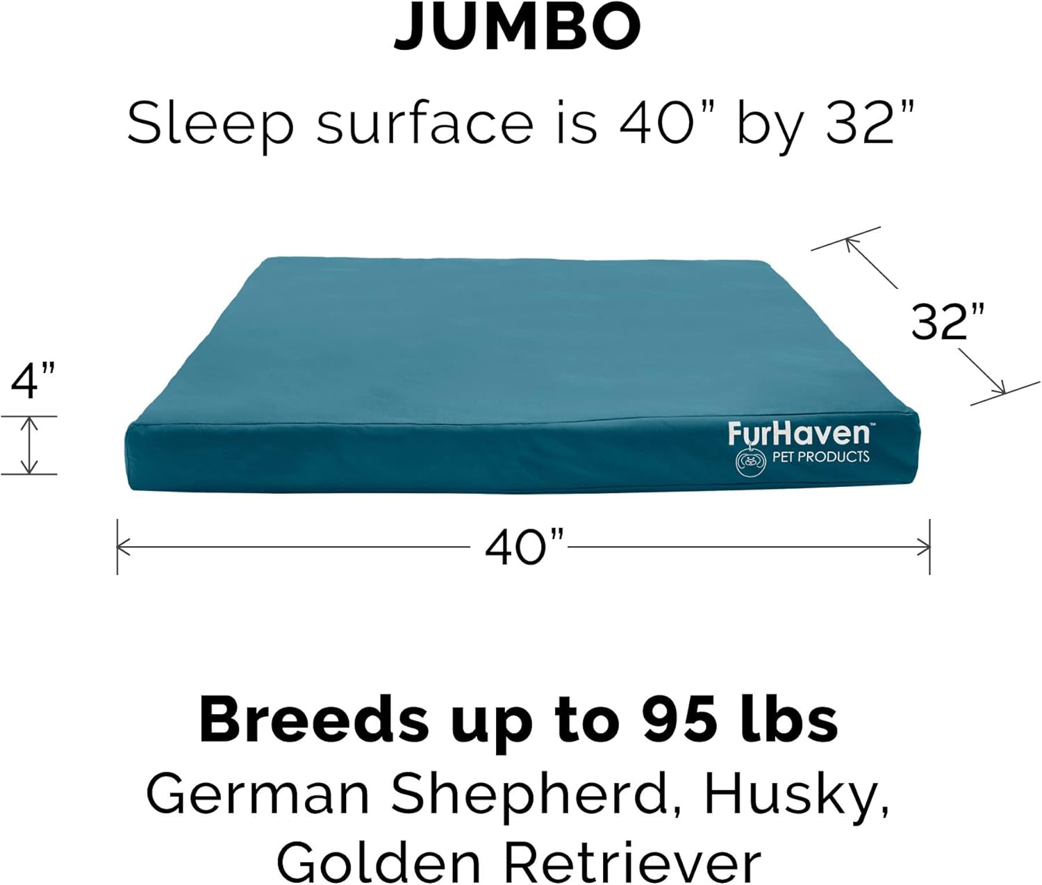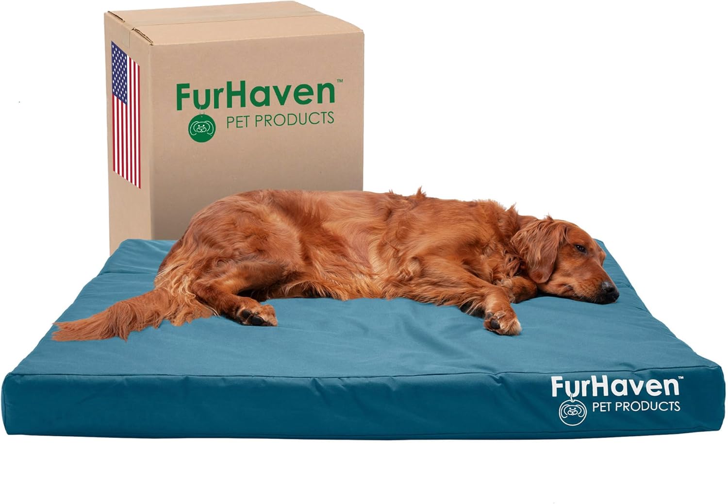 Furhaven Water-Resistant Cooling Gel Dog Bed for Large Dogs w/ Removable Washable Cover, For Dogs Up to 95 lbs - Indoor/Outdoor Logo Print Oxford Polycanvas Mattress - Deep Lagoon, Jumbo/XL