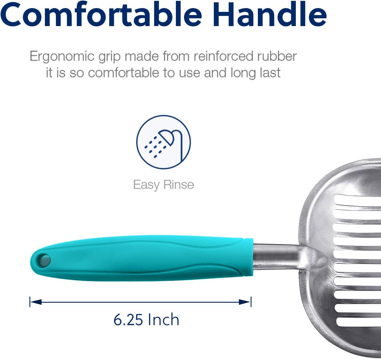 - [Functions]: The sharp edge helps to loosen clumps. The sifter area holds wet clumps and lets clean litter pass through easily. The long handle keeps you away from cat’s waste. It is designed to keep litter box clean and save you loads of cat litter.