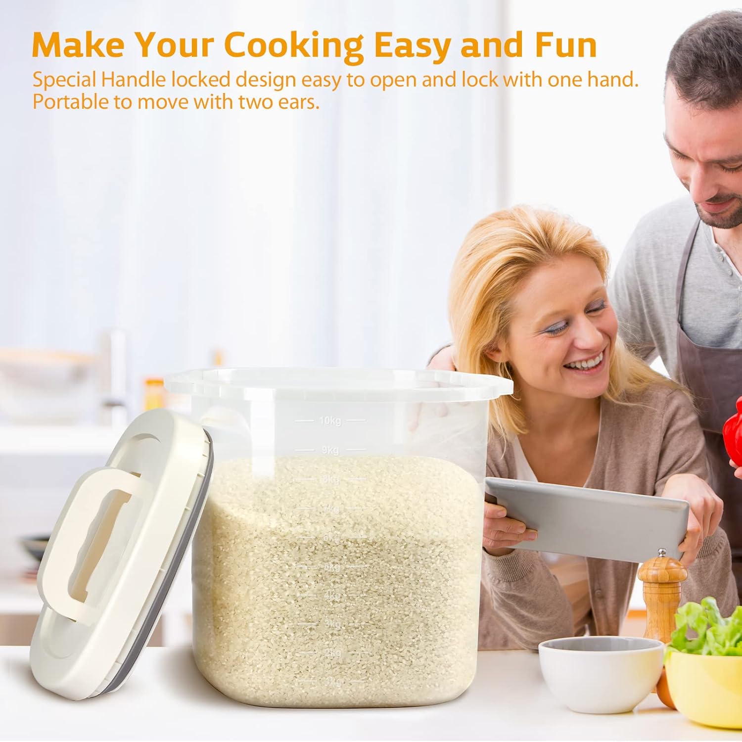 - CONVENIENT LID-LOCK AIRTIGHT HANDLE: we create this storage container with a airtight locked seal by simply pushing down the handle into the lid. Lift up the handle and pull it up, then the lid will open easily