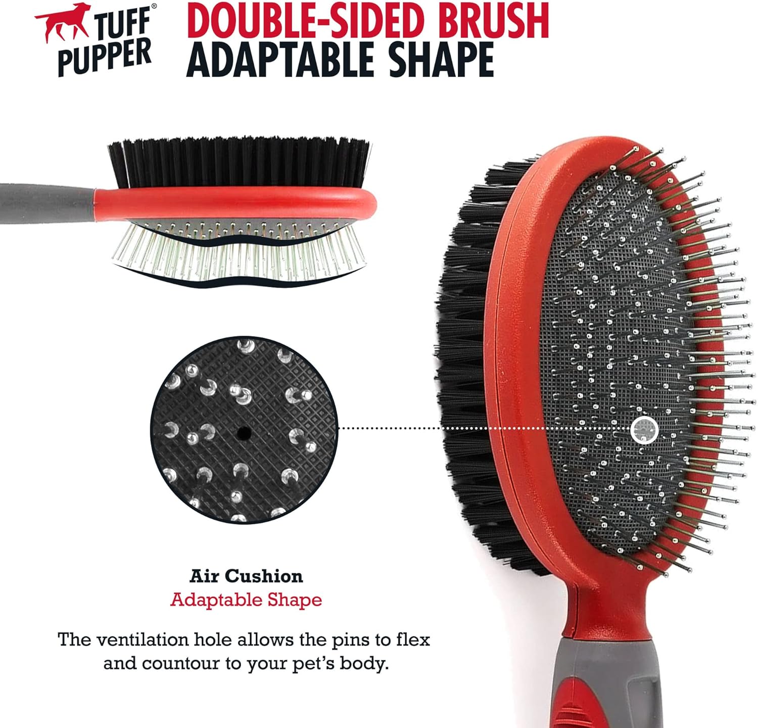 Tuff Pupper Double Sided Dog Brush, Detangling Tool for Dogs and Cats, Pin & Bristle Pet Brush, for and Hair Types, With Comfort-Grip Anti-Slip Handle, Brown, Black, White