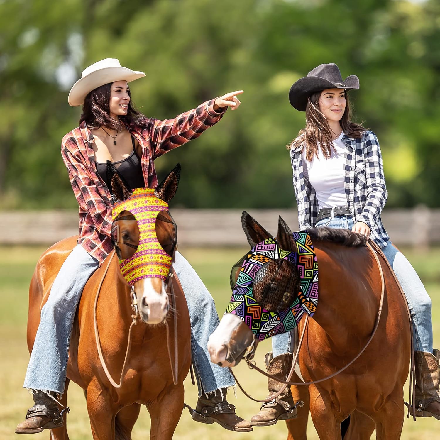 Frienda 4 Pieces Horse Fly Masks with Ears Face Covering UV Protection from Insect Pests Elasticity Smooth Comfortable Mesh Horse Mask Accessories(Geometric,Large)