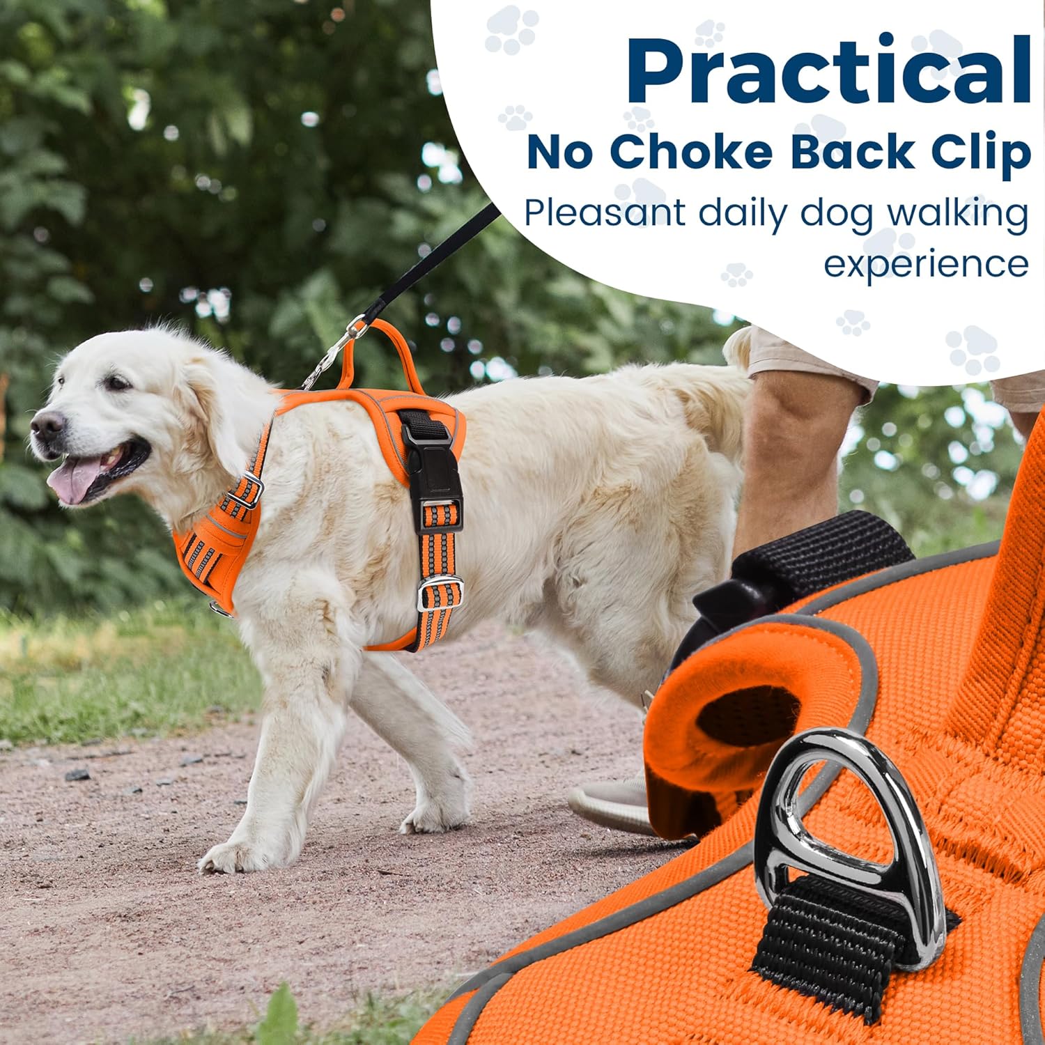 Funfox Dog Harness No Pull, Adjustable Pet Vest Harness, Super Soft Material with Vertical Handle Easy Control, Reflective Night Walking, 2 Leash Clips for Small Sized Dogs, Orange, S