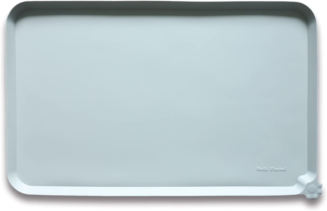 Hoki Found L Silicone Pet Feeding Mats with Higher Lips - Non Slip Pet Dog Cat Bowl Mats - Waterproof - Suitable for Carpet - Battleship