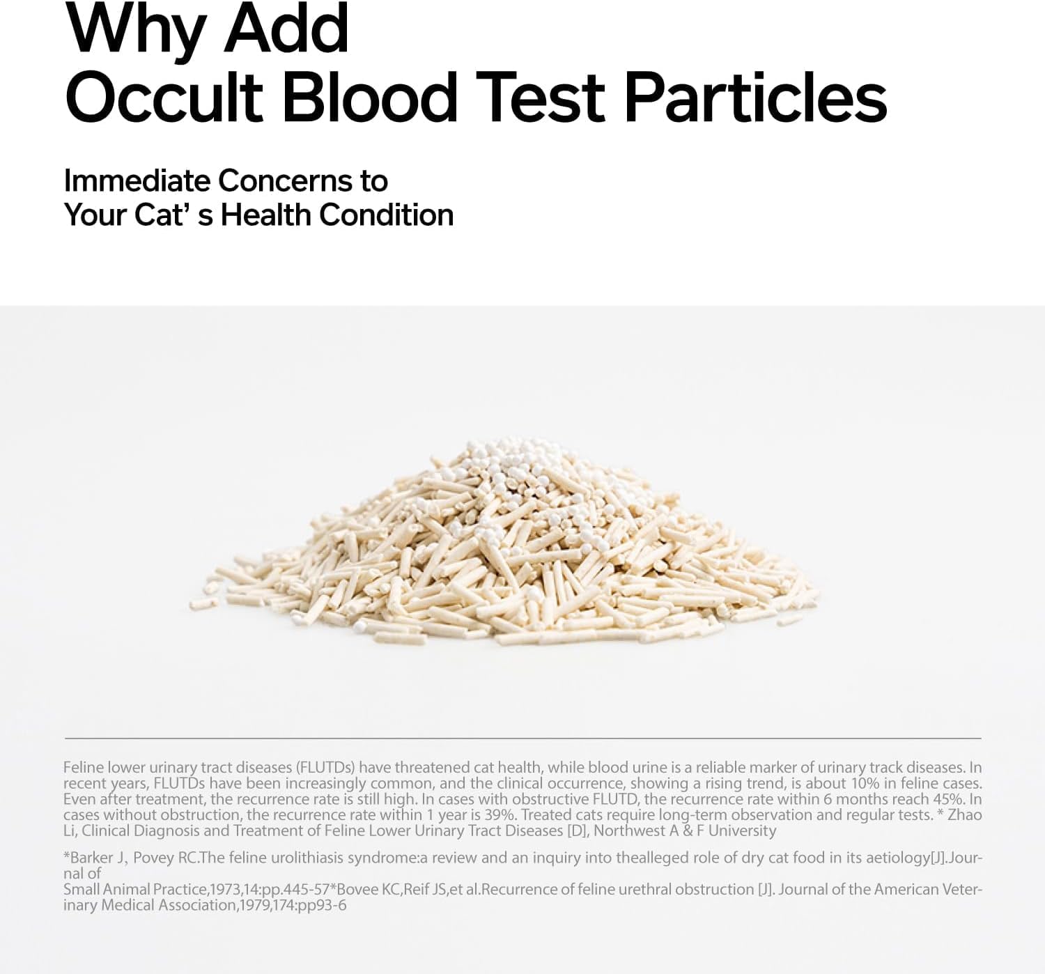 - 【Attention】 1.Direct exposure to hard light or friction with metal would invalid the detection function of the occult blood test particles. Please avoid such situations.2.Mineral substance contained in bentonite would affect the detection performance. Do NOT mix the product with other cat litter. 3.The vacuum design is only to facilitate its transportation and storage, and air leakage does NOT compromise the use. If you DO mind, please contact us.