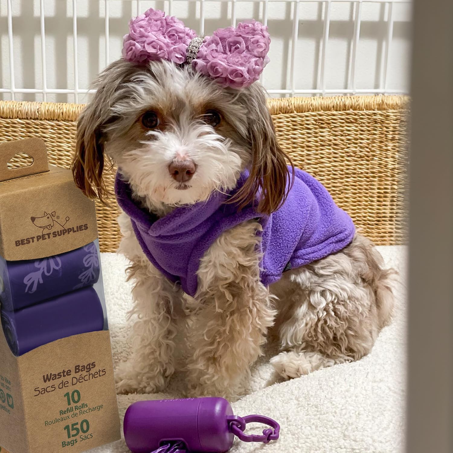Best Pet Supplies Dog Poop Bags (150 Bags) for Waste Refuse Cleanup, Doggy Roll Replacements for Outdoor Puppy Walking and Travel, Leak Proof and Tear Resistant, Thick Plastic - Purple