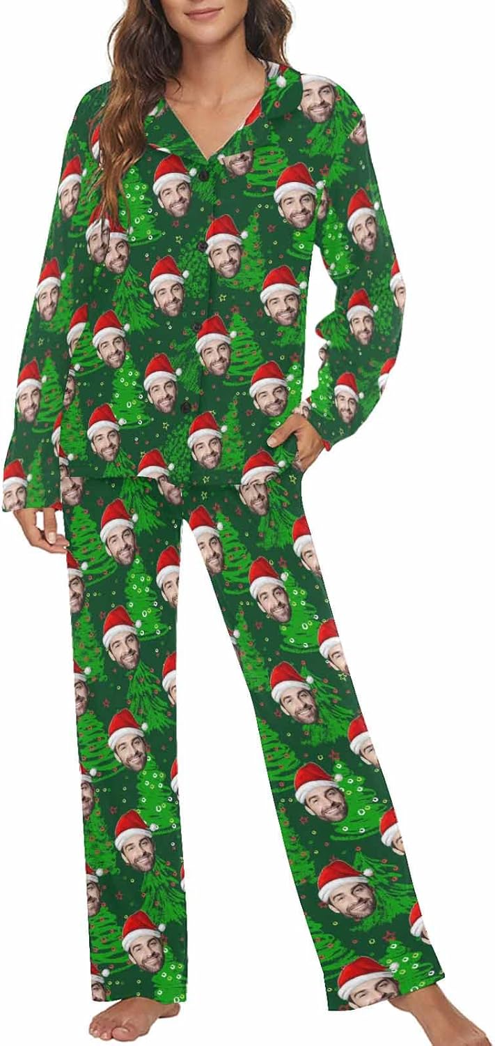 MyPupSocks Custom Face Pajamas for Women Set, Personalized Photo Long Sleepwear XS-XXL