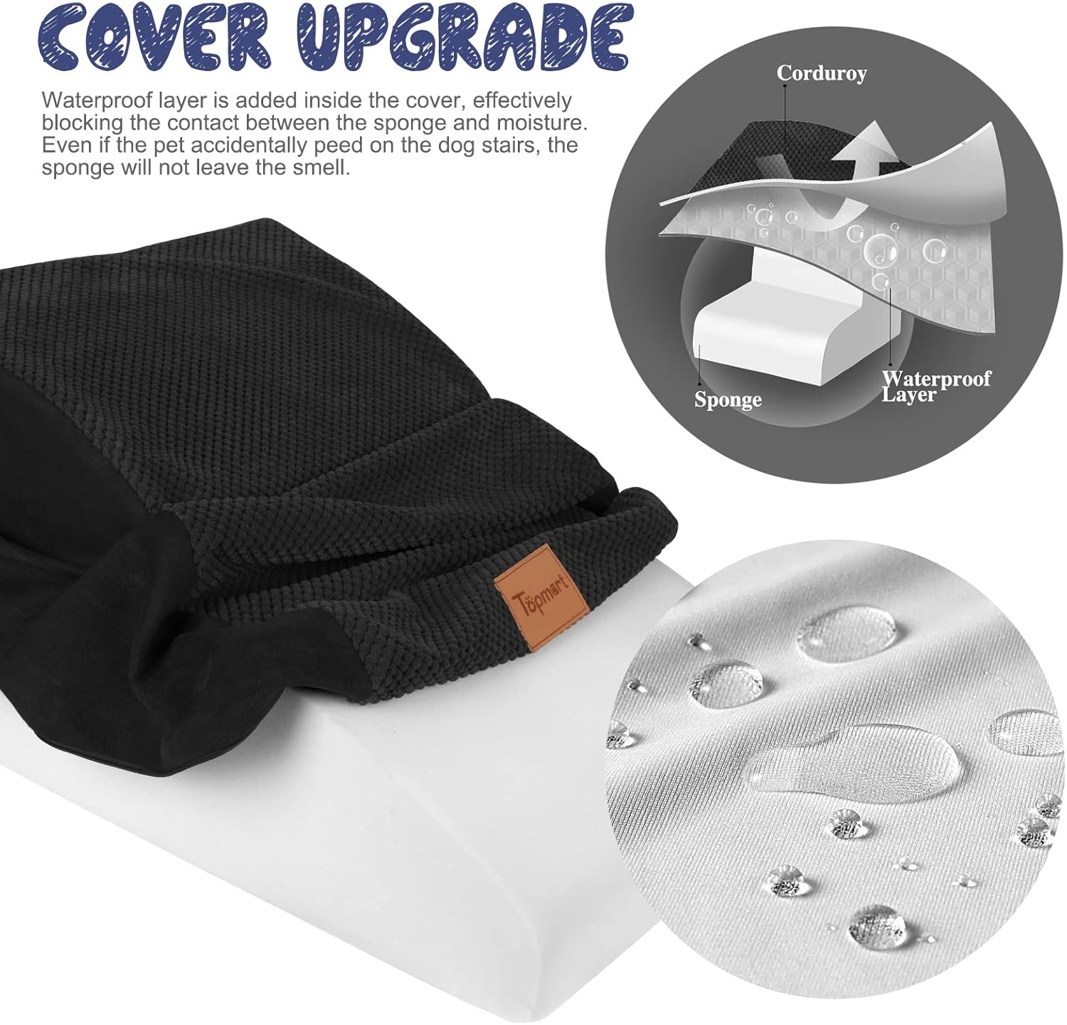 - Upgrade: Compared to the original model, we lengthened each step by 2 inches and each step is larger, increasing the safety of the product while providing a smoother climbing environment for older or leg-injured pets. Cover added waterproof layer to protect the sponge from getting dirty. Even if the pet accidentally pee on the dog ladder, will not leave a mark on the sponge.