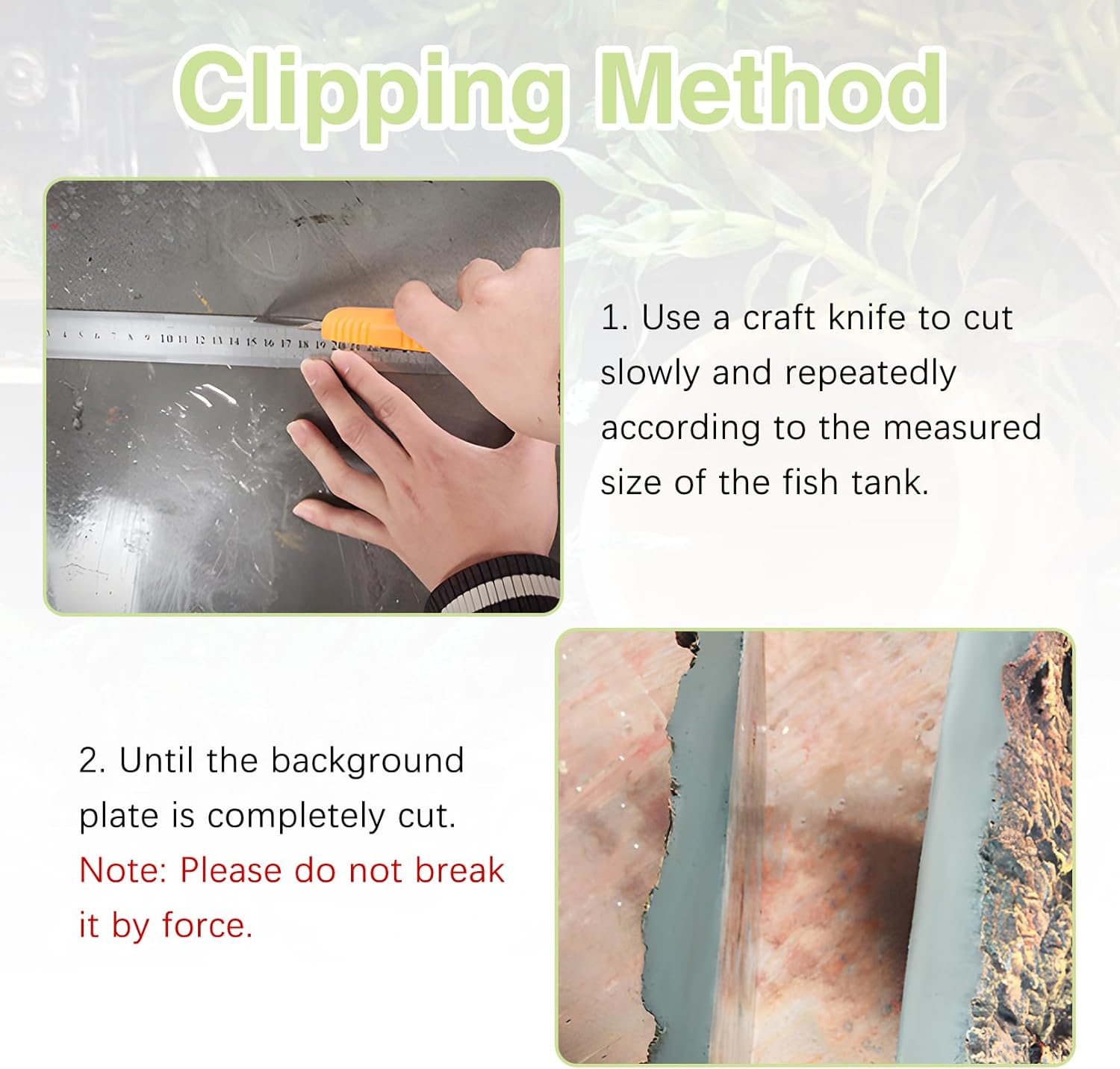 - 【Easy to Cut and Install】Corn snake tank background is an easy to cut background that can be easily cut. With a utility knife you can cut it into the right size for the tank and easy to put together. If used in a fish tank, it is recommended to fix it with glue to avoid the backdrop from floating up