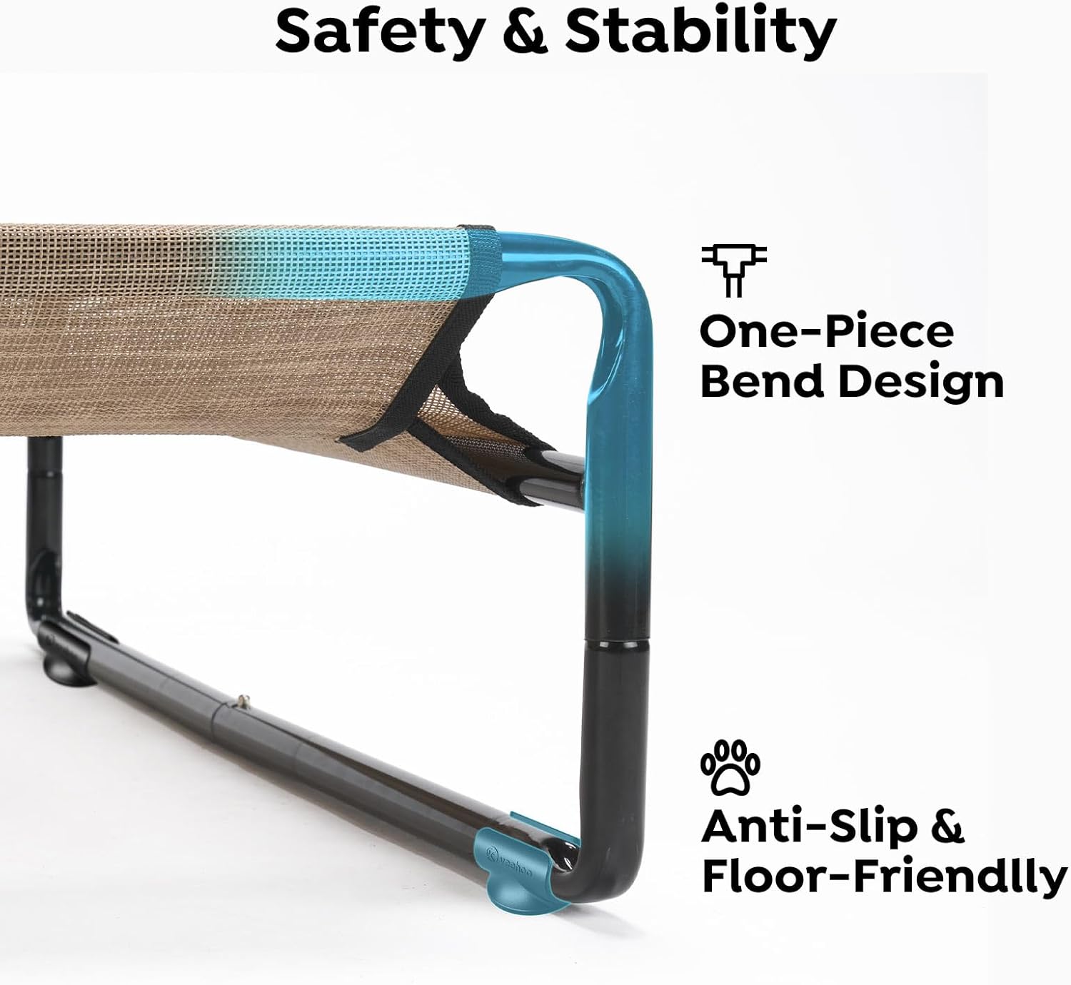 - More Robust and Friendly. One-piece bend design at the corner of the tubes, which features more stable. And more, there are anti-slip rubber on the short bearing pipes, can not noly protect your floors from scratches, but keep the outdoor dog bed from sliding when your dog jumps on or off.