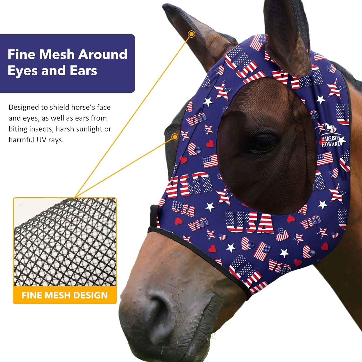 Harrison Howard Super Comfort Stretchy Fly Mask Large Eye Space with UV Protection Soft on Skin with Breathability Classic Letters M Cob