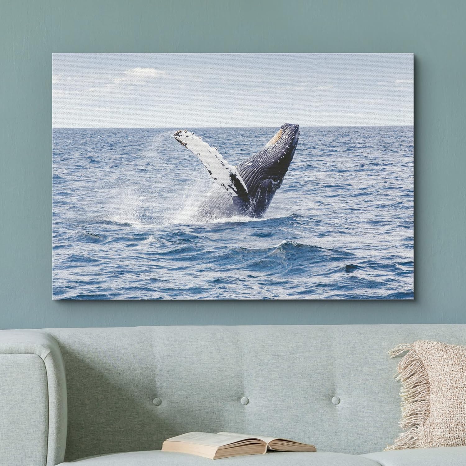 wall26 Canvas Print Wall Art Tropical Ocean Sea Water Horizon Blue Whale Nature Animals Photography Realism Rustic Scenic Landscape Wilderness Colorful for Living Room, Bedroom, Office - 12"x18"