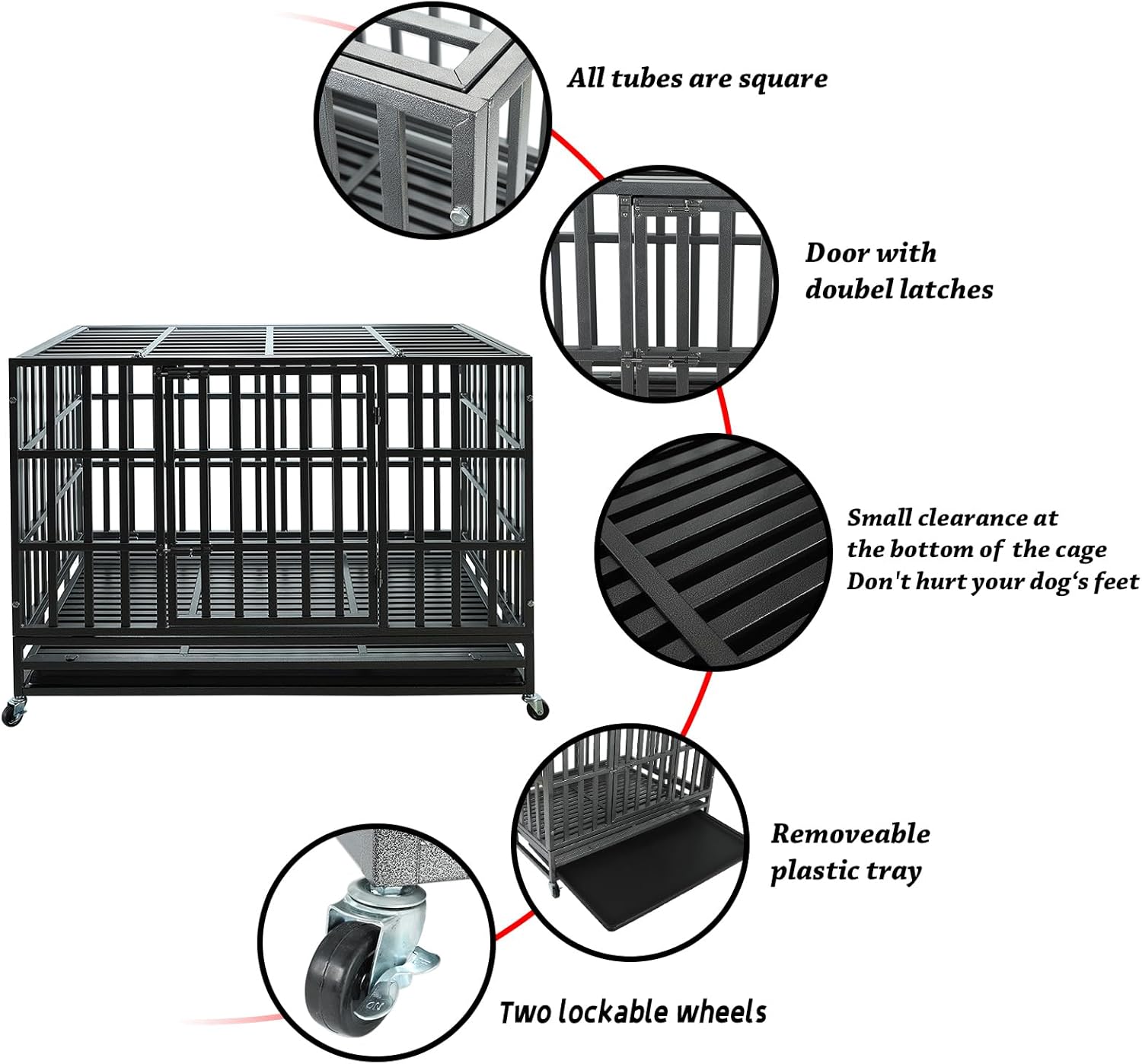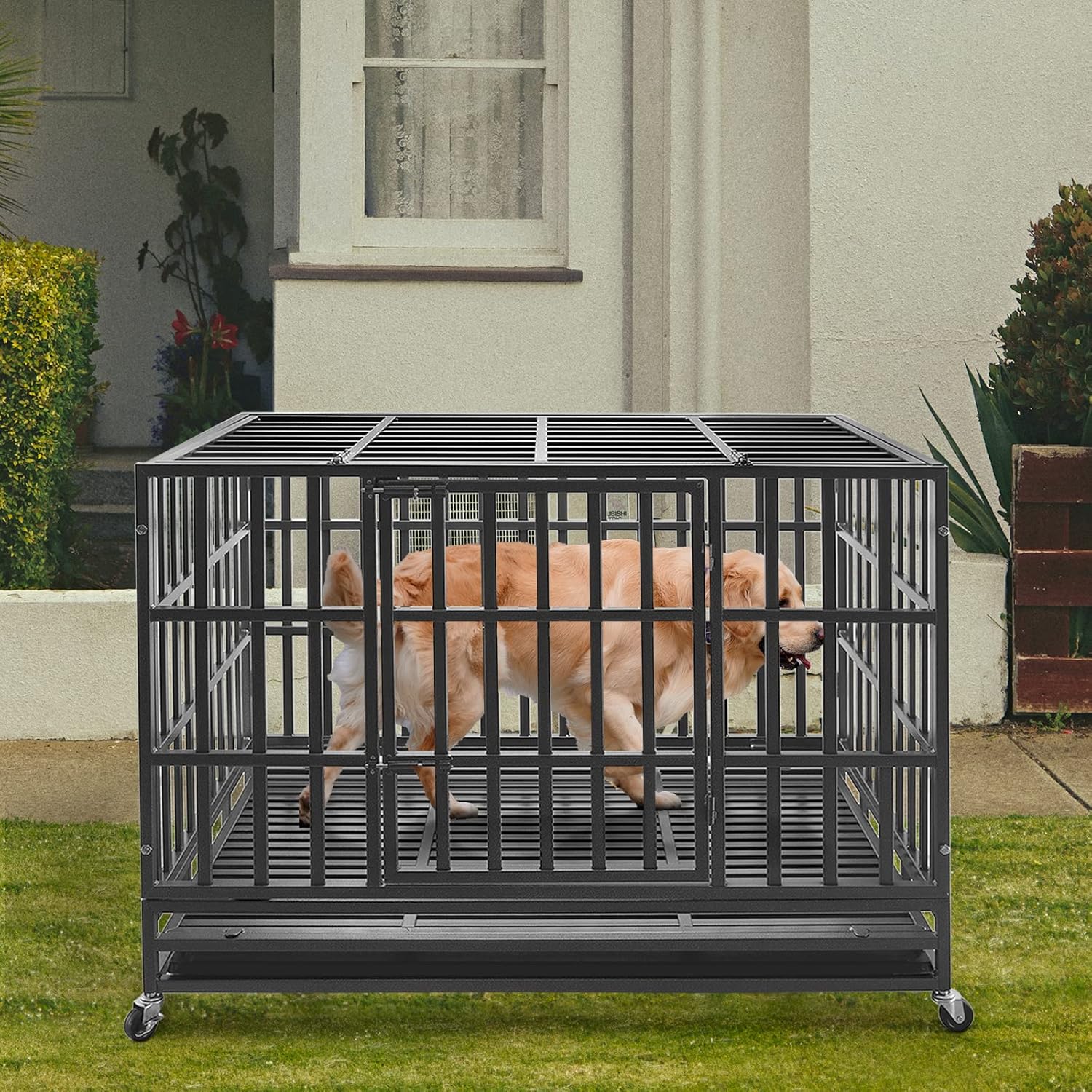 Confote 47Inch Heavy Duty Dog Kennel Strong Metal Dog Cage Pet Crate for Medium and Large Dogs with Four Lockable Wheels, Removeable Tray