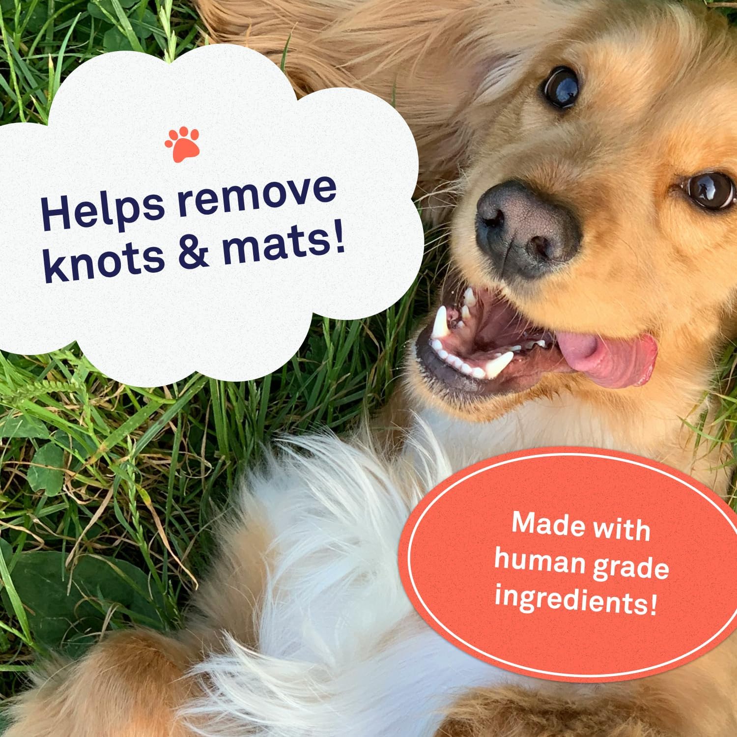 - TANGLE FREE COAT IN MINUTES! This dog hair detangler lubricates and strengthens fur while you brush so you can easily remove knots, tangles, and mats. Put those scissors away!