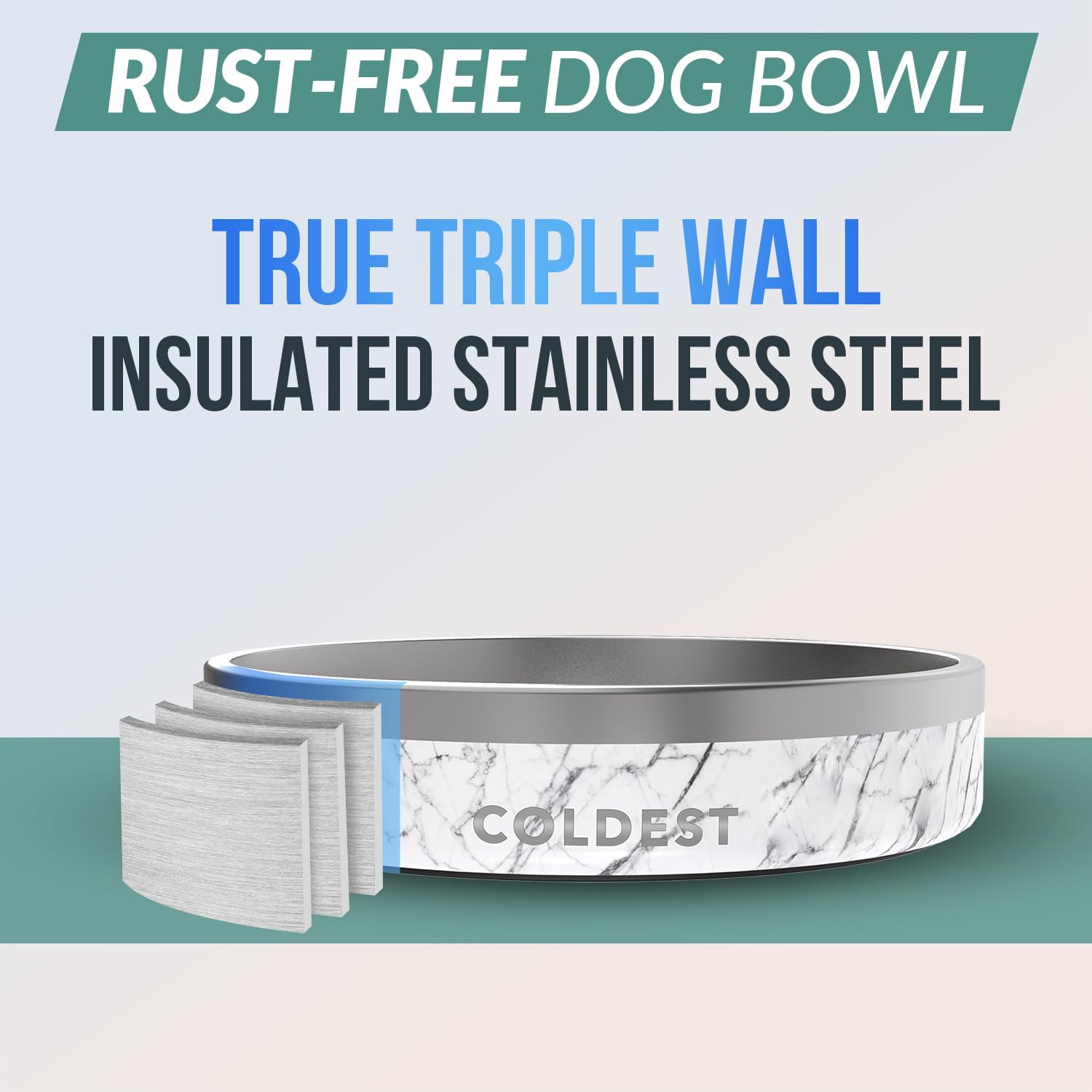 - TRUE TRIPLE WALL INSULATION: Coldest Dog Bowl is built with True Triple Wall Insulated Stainless Steel, offering durability against chewing and lasting performance. Perfect for active pets, it ensures longevity for years of use.