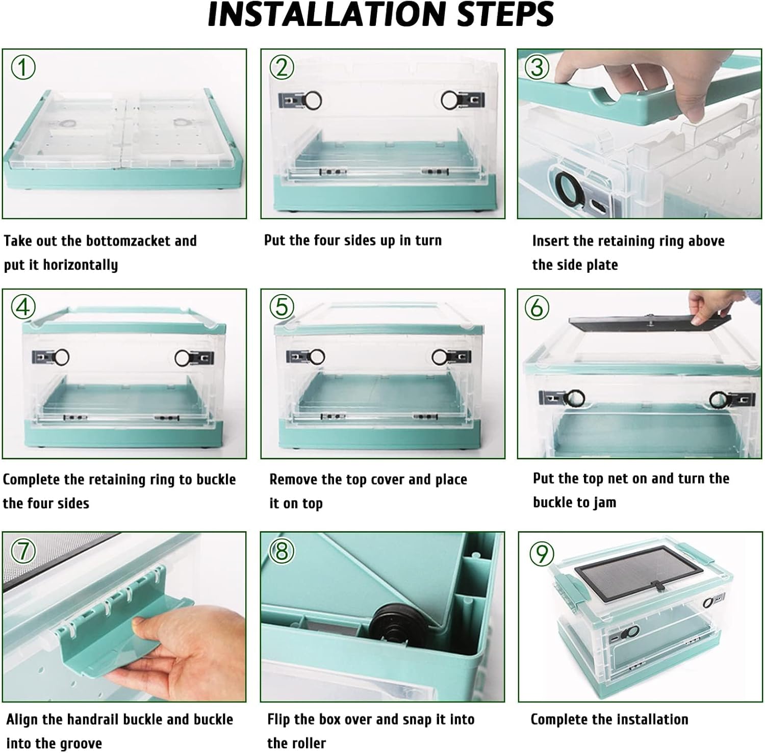 - Easy to Assemble: Very easy to install, only takes a few minutes to set up.If you want to travel with your pet, this tank is for you! Note: It is not recommended to feed crickets, worms, super worms and other feed