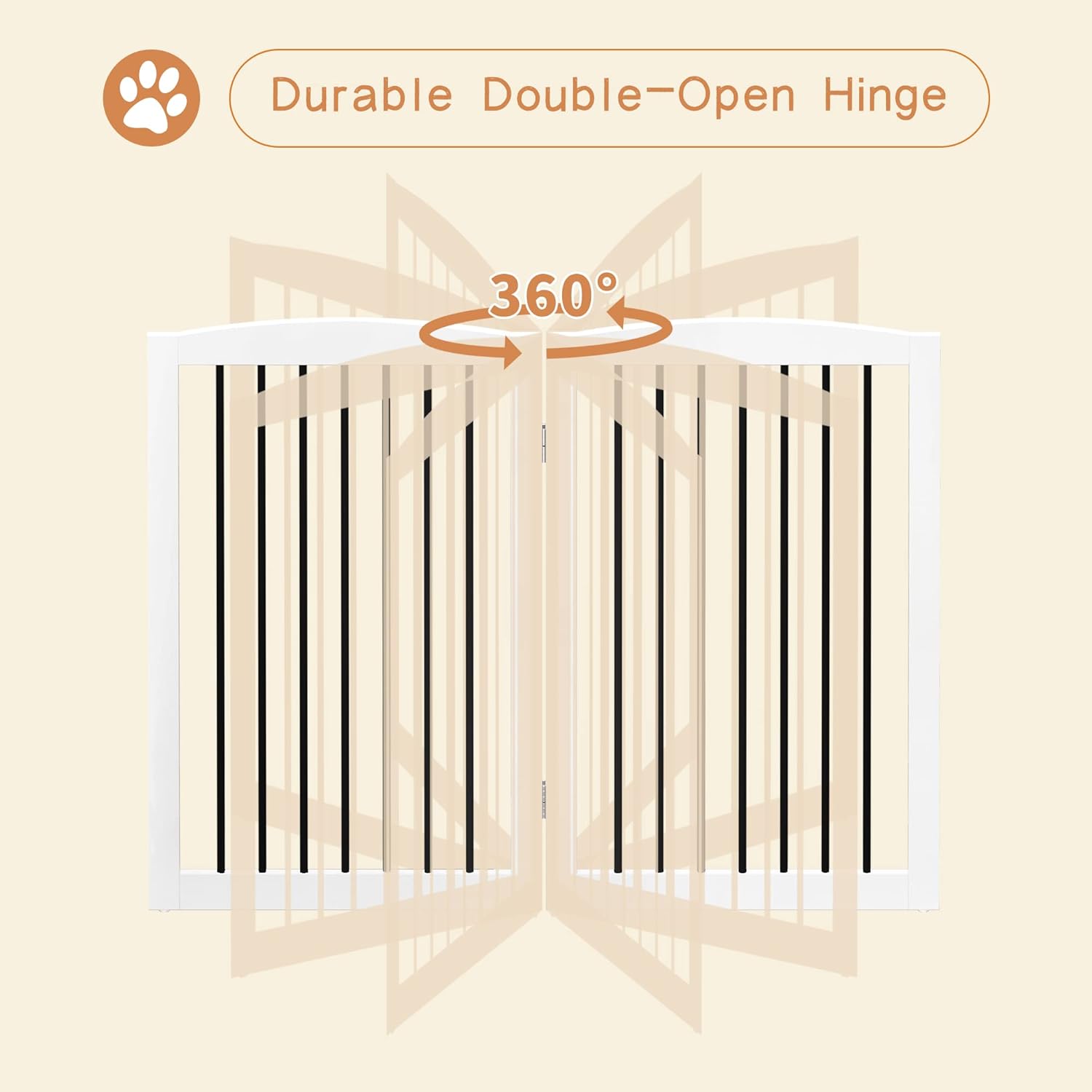 - 【FLEXIBLE FOLDING & STABILITY】: With flexible 360° hinges, this free standing pet gate can be fold in different shapes and barricade your pets in doorways, entryways, halls, bedrooms, stairs, kitchens, balconies. It is sturdy enough with exclusive support feet.