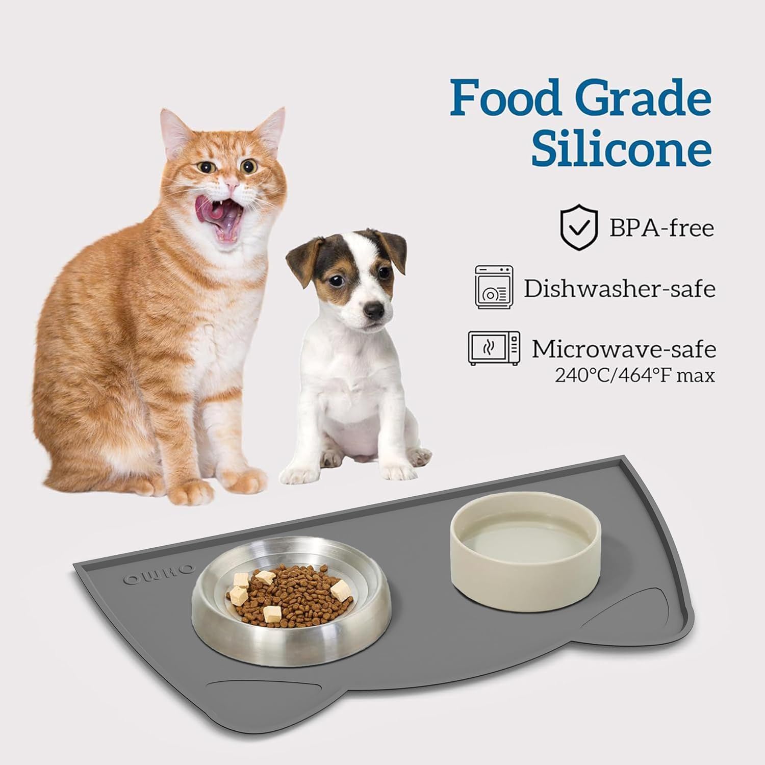 OHMO - Cat Food Mat, Silicone Pet Feeding Mat for Floor Non-Skid Waterproof Dog Water Bowl Tray, Easy to Clean Pet Placemat