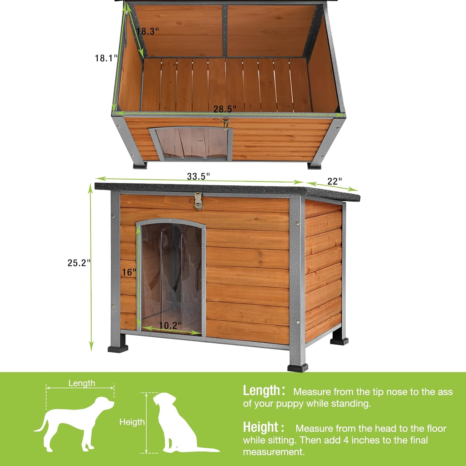 GUTINNEEN Chew Proof Dog House with Metal Iron Frame Outdoor Dog Kennel for Small Medium Large Indoor Dog Cage (33.5" L,Brown Color)