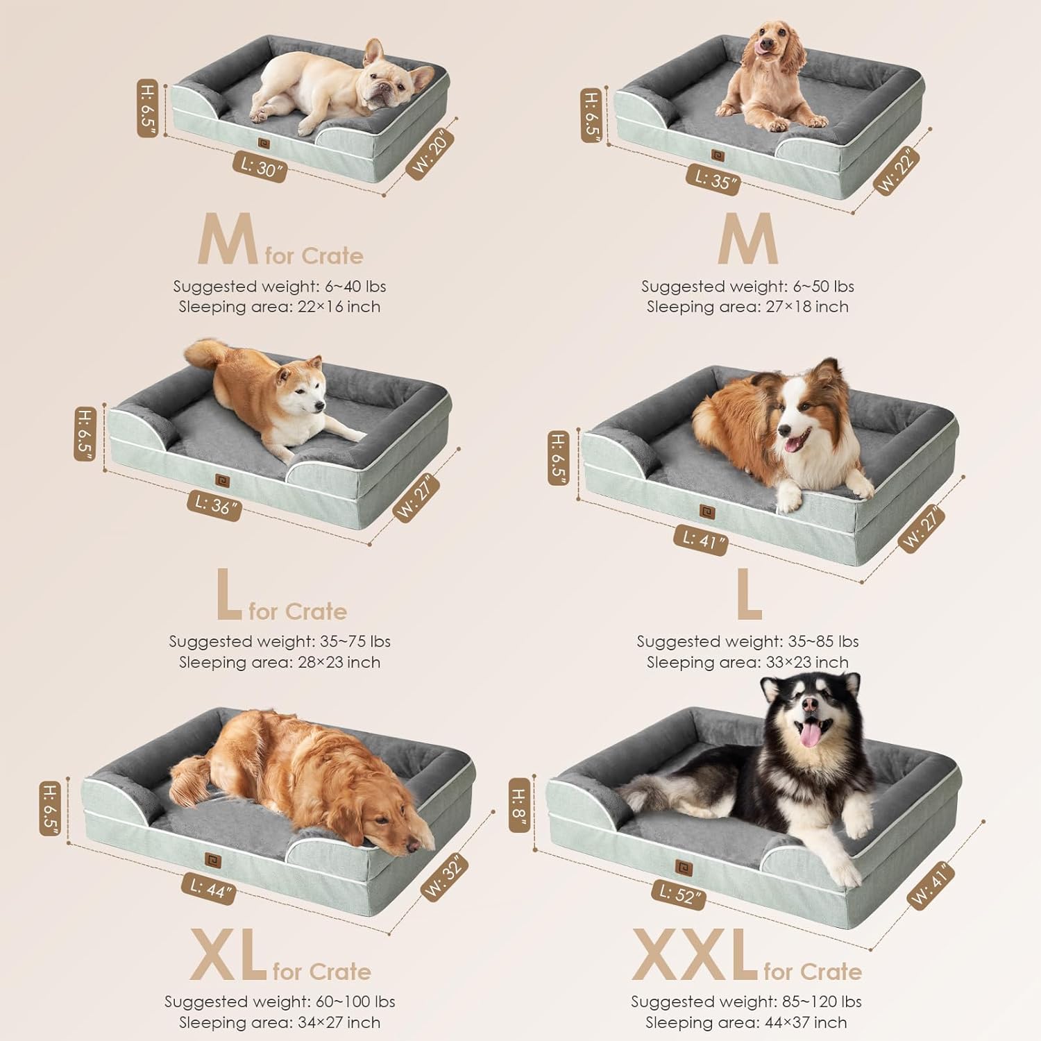 EHEYCIGA Orthopedic Dog Beds for Large Dogs, Waterproof Memory Foam Large Pet Bed with Sides, Non-Slip Bottom and Egg-Crate Foam Dog Couch Bed with Washable Removable Cover, Greyish Green