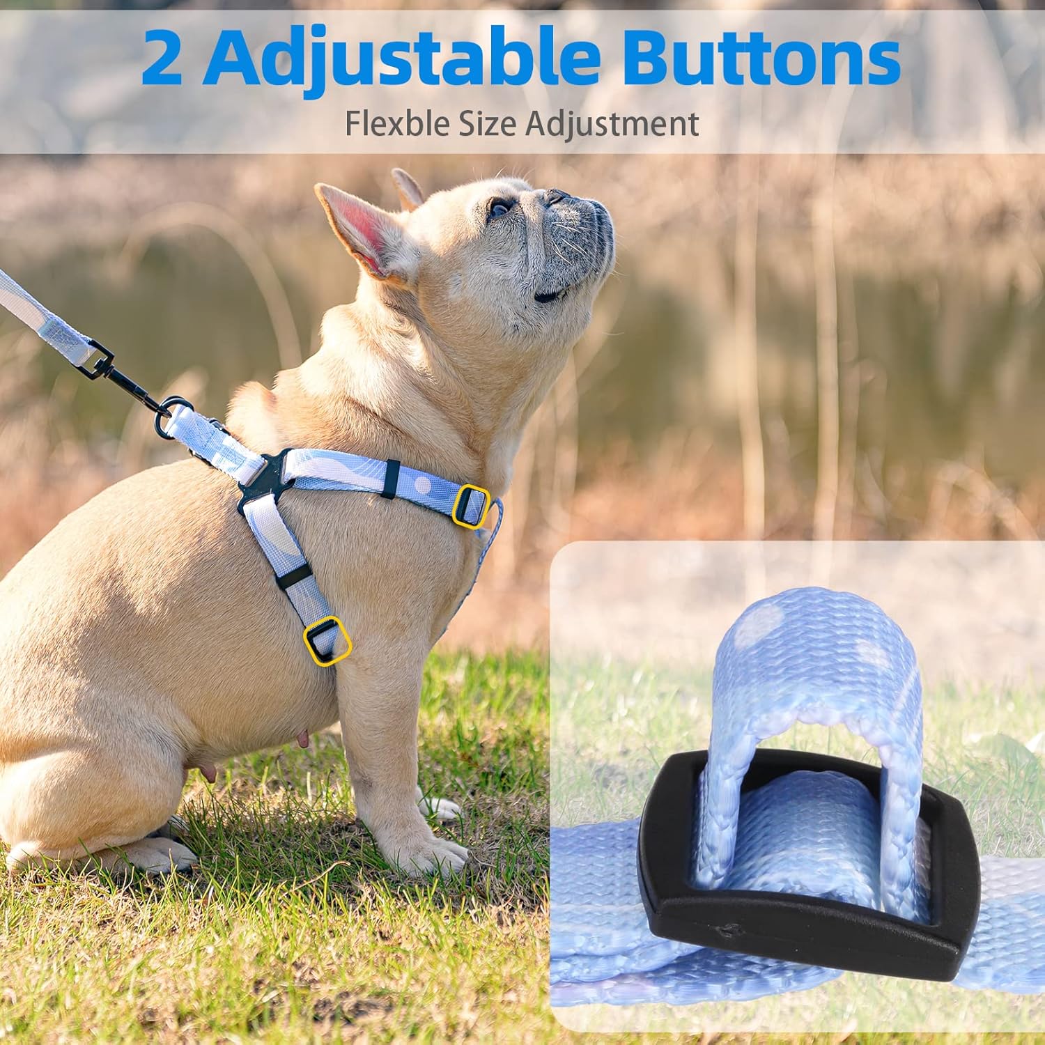 - [Step in Harness] - The harness is very easy to put on/take off. Just let your dog's front leg in, then close the buckle, adjust the strap to fit perfectly, and done! It makes your travel faster and more convenient.