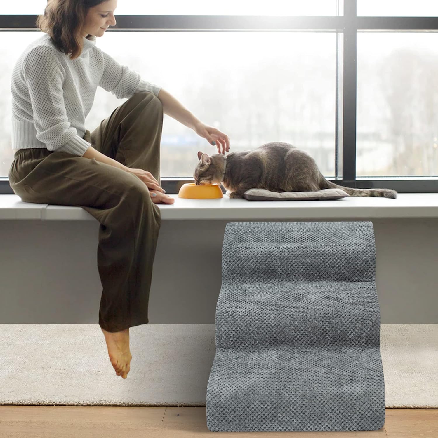 - Double Sided Anti Slip: The dog steps cover is made of corduroy with greater friction than other fabrics, which provides extra grip while in use, the bottom features nonslip rubber dots, preventing pets from sliding while climbing, providing pets with double safety protection