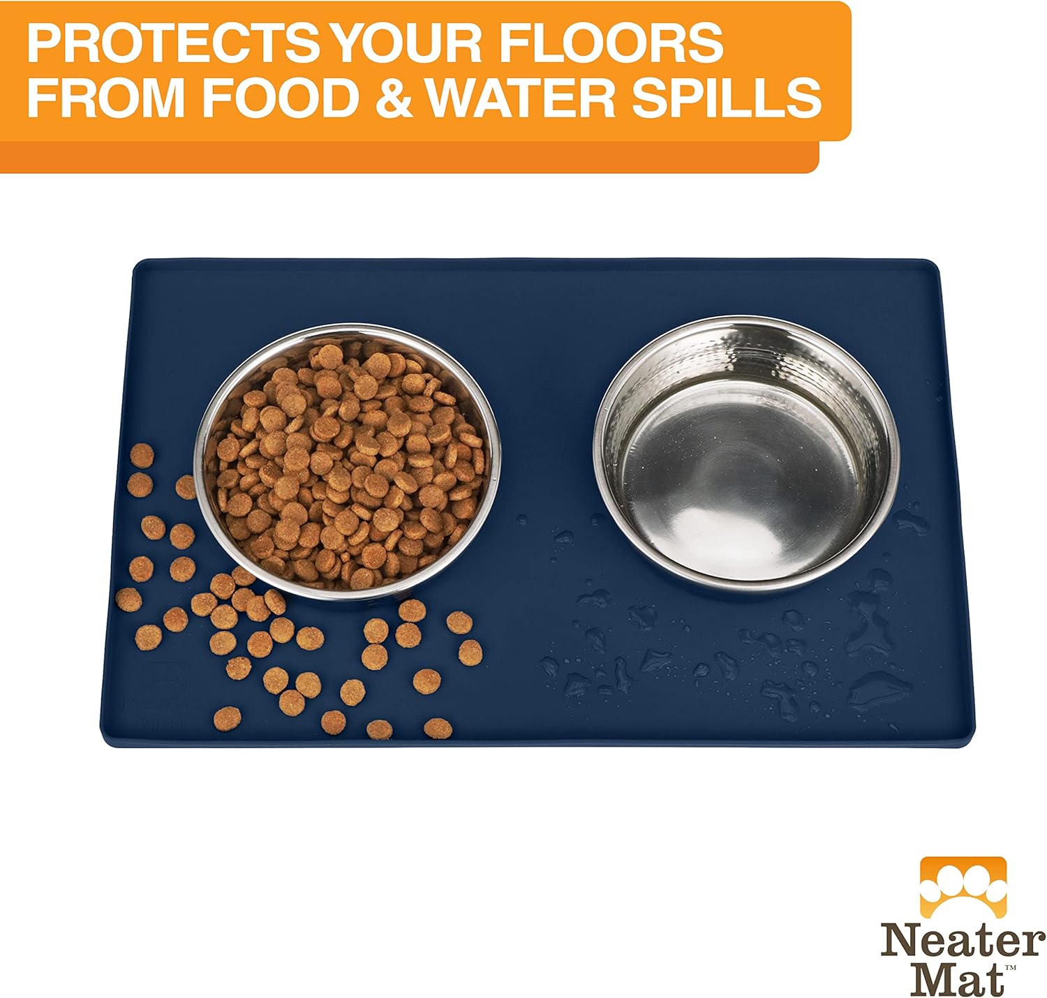 - PET MATS PROTECT FLOORS FROM SPILLS: Neater Mat pet mat goes under your cat or dog’s food and water bowls to catch any spills or splashes from getting onto your floor.