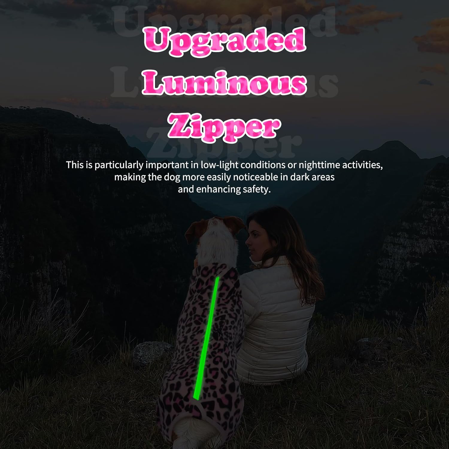 ROZKITCH Dog Warm Pajamas, Pet Windproof Warm Cold Weather Jacket Vest with Luminous Zipper, Jumpsuit Apparel Outfit Clothes for Small Medium Large Dog L-Pink 2XL