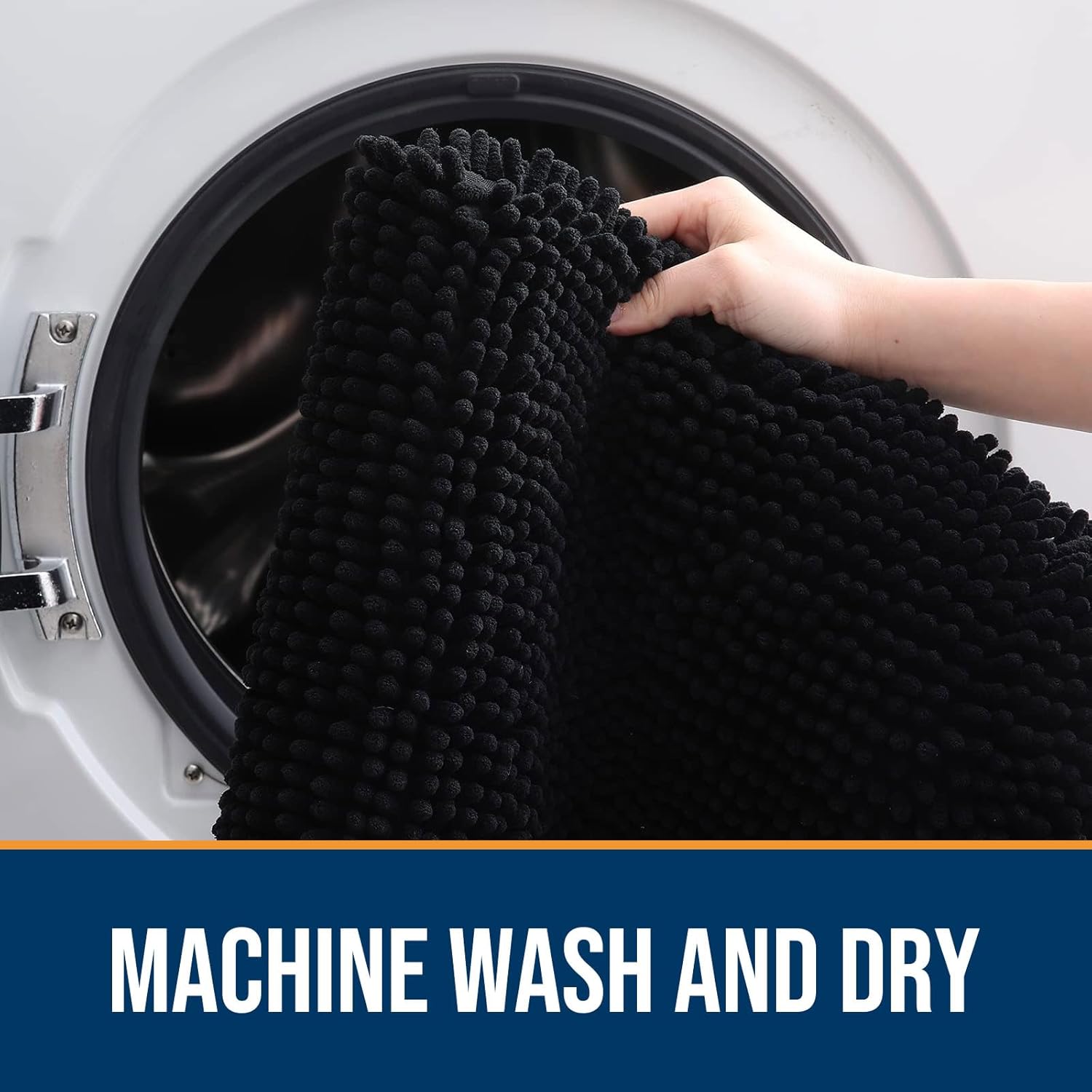 OLANLY Dog Door Mat for Muddy Paws 36x24, Absorbs Moisture and Dirt, Absorbent Non-Slip Washable Doormat, Quick Dry Chenille Mud Mat for Dogs, Entry Indoor Entryway Carpet for Inside Floor, Black
