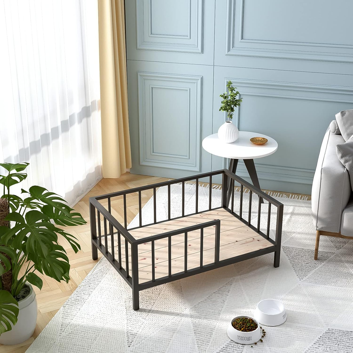 - SOLID STRUCTURE & CHEW RESISTANT - The dog bed frame is made of thick metal pipe, plus solid wood bed board so that the whole bed is extremely strong. The metal pipe also ensures the dog bed will not be damaged by any pet's biting. In addition to the mat, we believe this pet bed frame will accompany your pet for a lifetime.