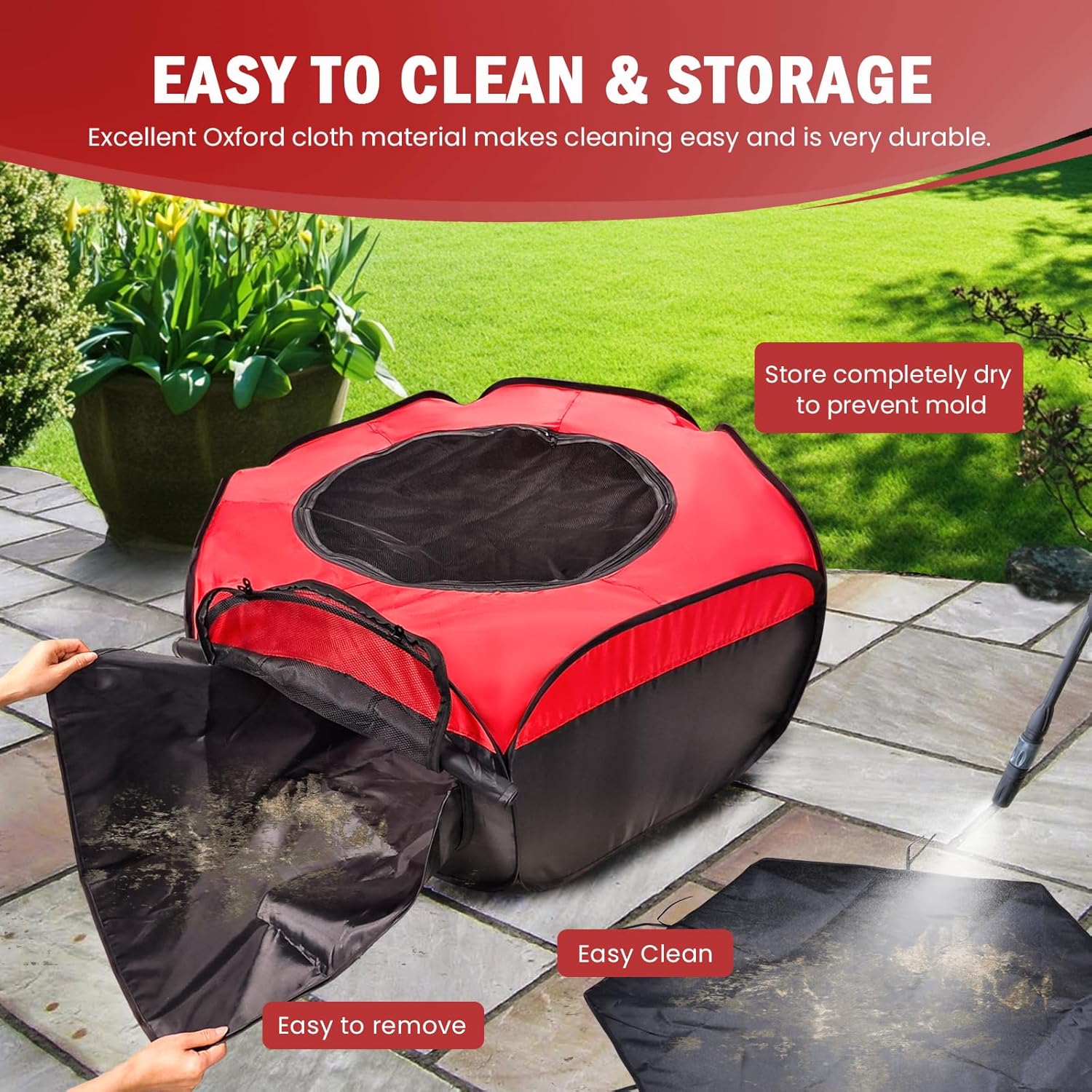 - EASY TO CLEAN - The chick brooder pen, crafted from durable Oxford cloth, is washable and dries quickly. For a deep clean, hand wash it. The brooder pan board is reusable for easy upkeep. Tip: Ensure the brooder box is fully dry before putting it away.