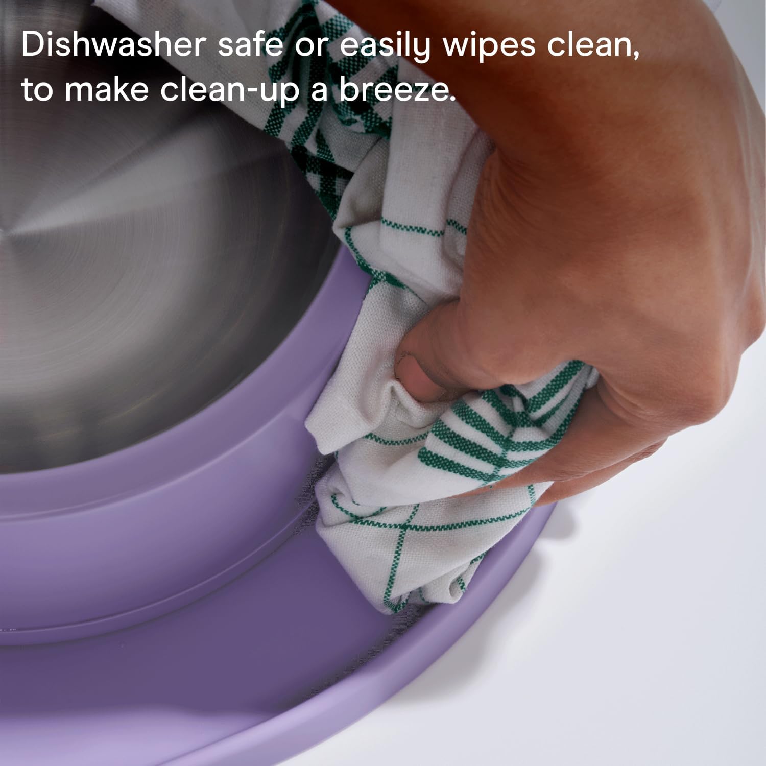 - MESS-FREE MEALTIME: Raised edges on the Placemat contain spills and protect floors, and the Bowls' silicone base ring prevents slipping and sliding.